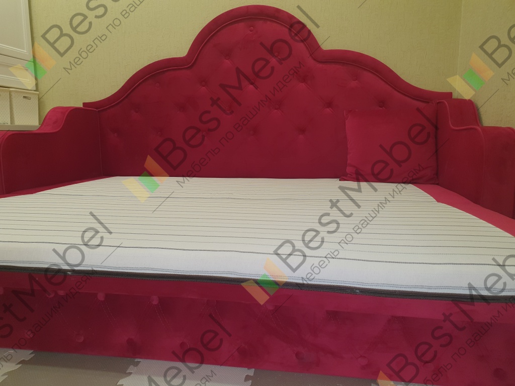 Прекрасное исполнение👍. Неожиданно, вместе с другой мебелью, заказали девочке 8ми лет, с расчетом на вырост, и остались очень довольны! Цвет ткани отдельный восторг, не красный, а красивый тёмно-розовый насышенный (велюр Италия 15). Очень рекомендую.