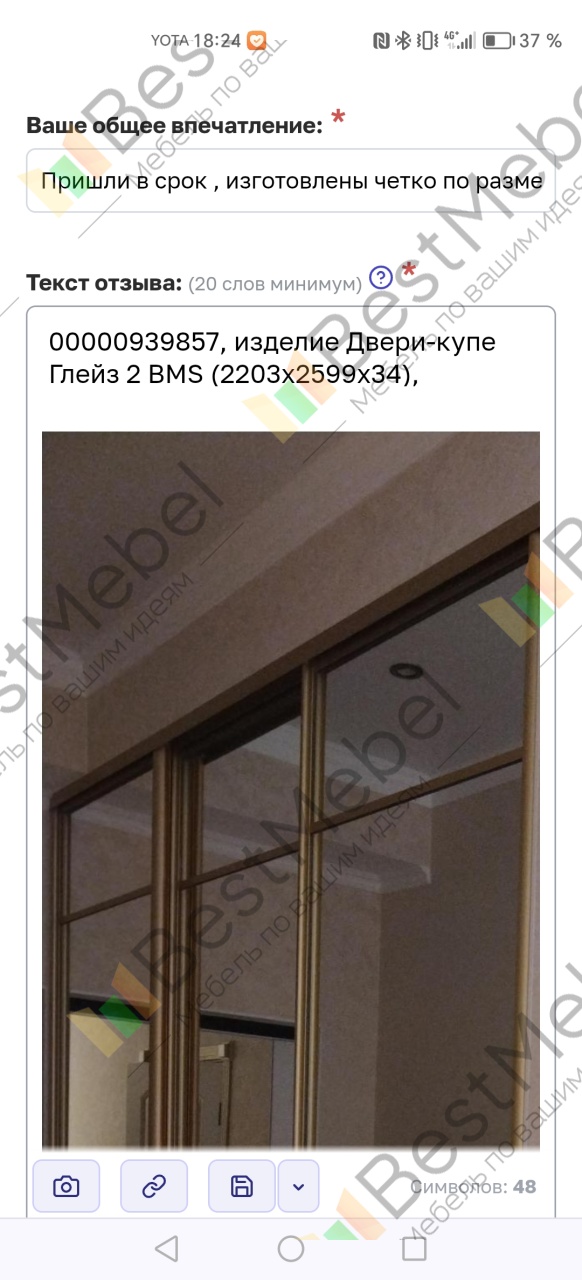 00000939857, изделие Двери-купе Глейз 2 BMS (2203х2599х34),