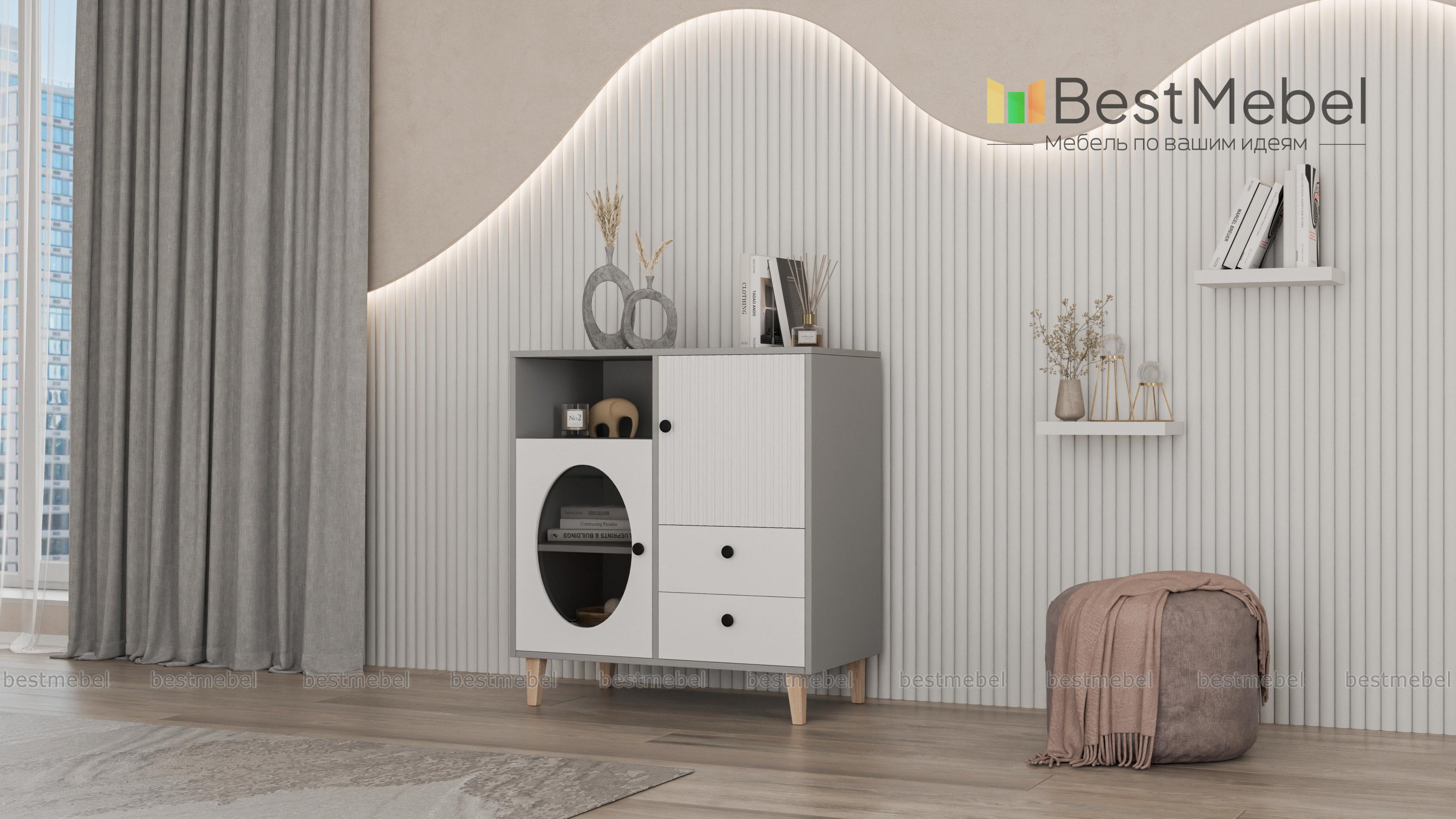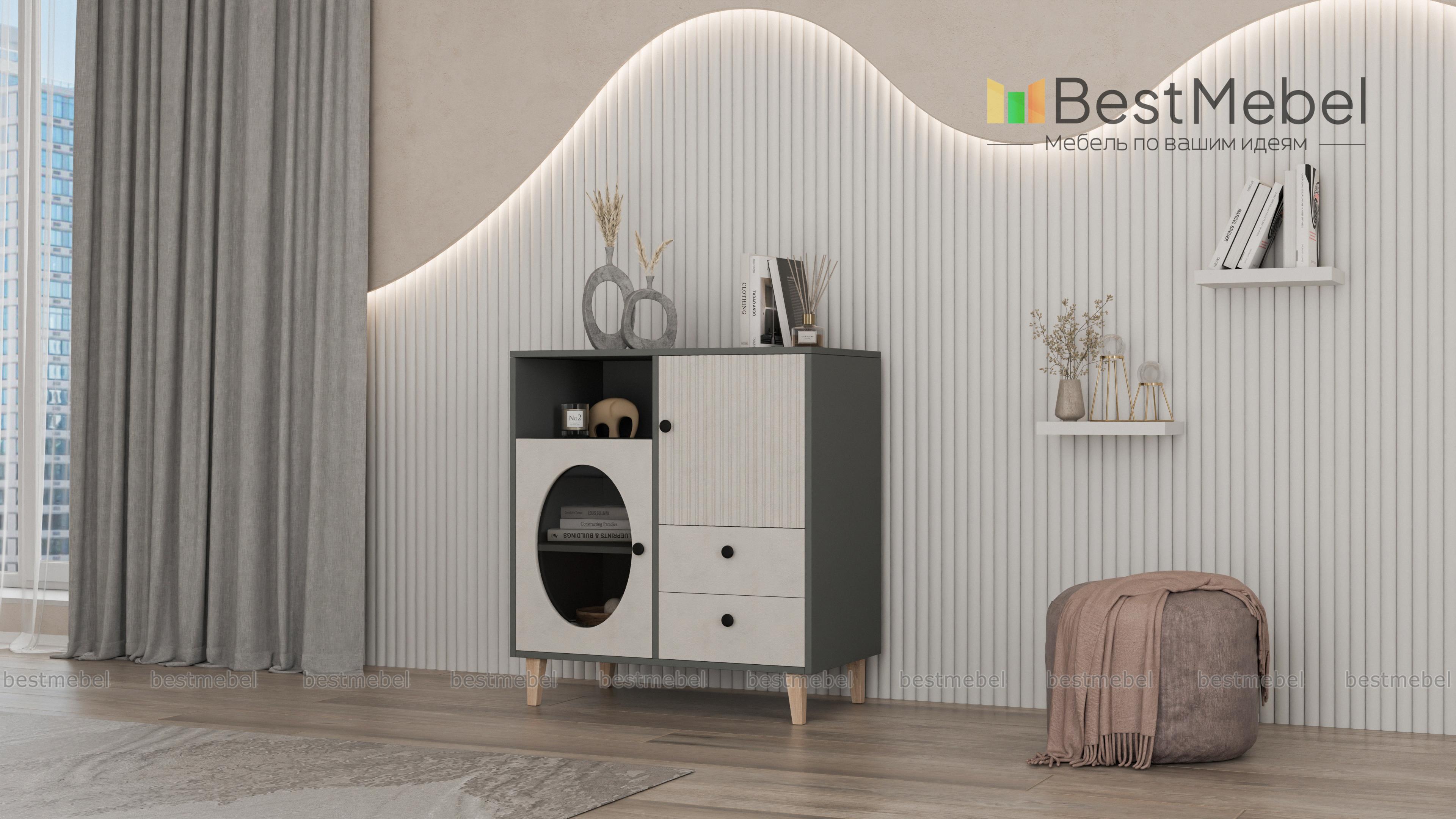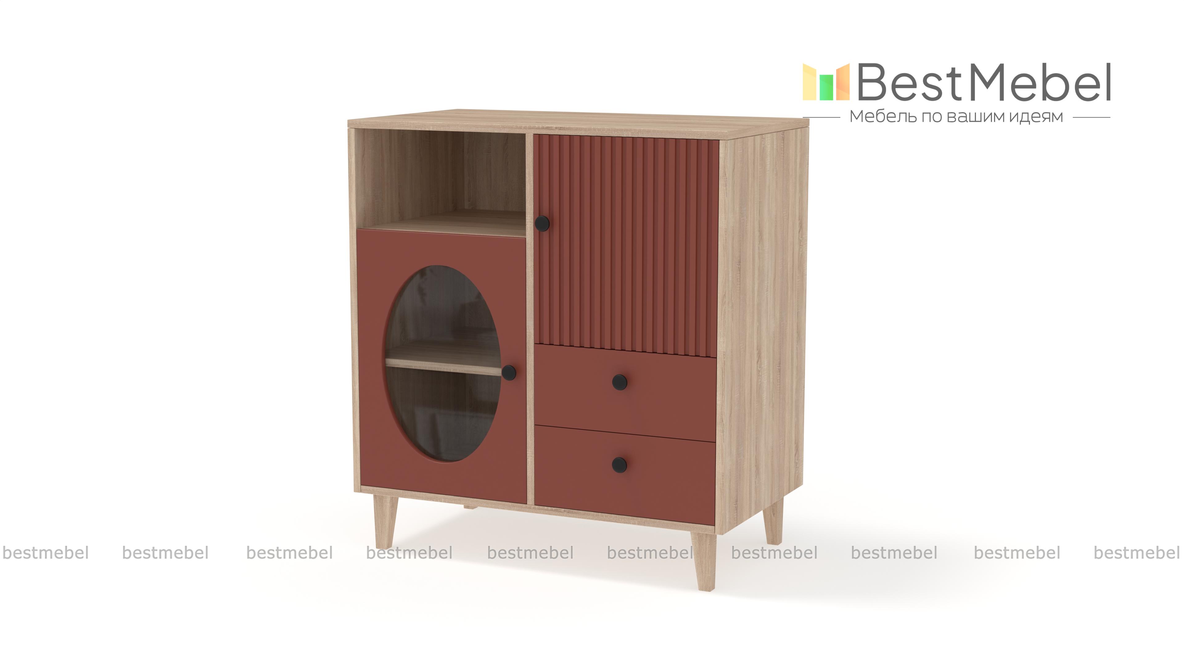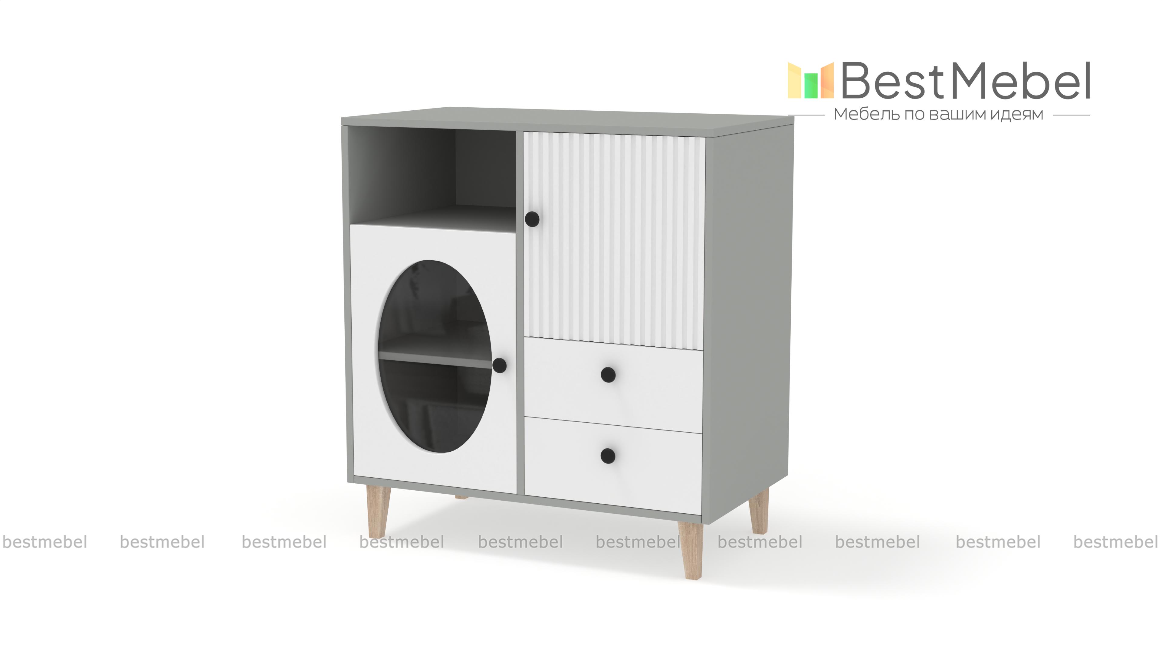 Комод Брукс 1 BMS сочетает в себе функциональность и современную эстетику. Ящики, в которых все будет лежать на своих местах, и закрытое распашное отделение скомбинированы в этом небольшом комоде с глубокой нишей и витриной. Вертикальный рельеф, геометрический вырез на дверце и стильные детали в виде круглых ручек придают дизайну особенную выразительность. Купить комод Брукс 1 BMS вы сможете на сайте нашего интернет-магазина, подобрав нужный размер и актуальные оттенки из каталога.