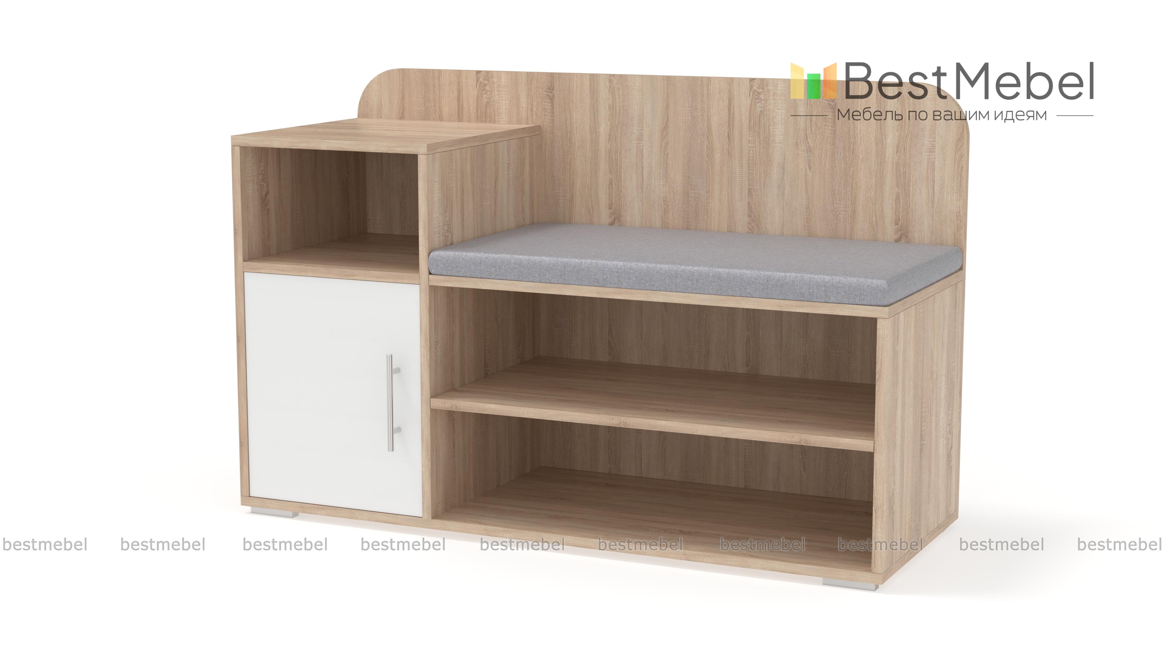 Обувница Лани BMS – экономичное решение для меблировки входной зоны, в котором сочетаются простота конструкции и функциональность. Комбинированная модель оборудована открытыми полками для хранения повседневной обуви, распашным шкафчиком и нишей для уходовых средств, комфортным сиденьем с мягкой тканевой обивкой и скругленной по углам спинкой. Легко вписаться в современный интерьер поможет актуальная черно-белая гамма. Купить обувницу Лани BMS приглашаем недорого в наш интернет-магазин.