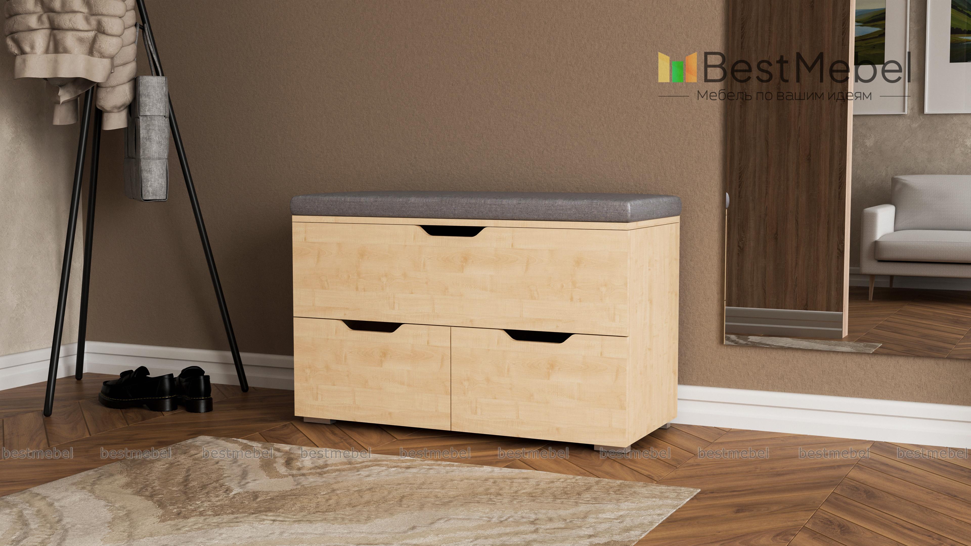 Обувница Мастер BMS поможет сэкономить полезную площадь небольшой прихожей, объединив функции системы хранения и банкетки. Практичная модель оборудована комфортным сиденьем с мягкой тканевой обивкой, одним широким и двумя малыми выдвижными ящиками с ручками-вырезами для обуви и уходовых средств. Обувница выполнена в натуральных оттенках под древесный массив и легко впишется в большинство современных интерьеров. Купить обувницу Мастер BMS приглашаем в наш интернет-магазин по приятной цене.