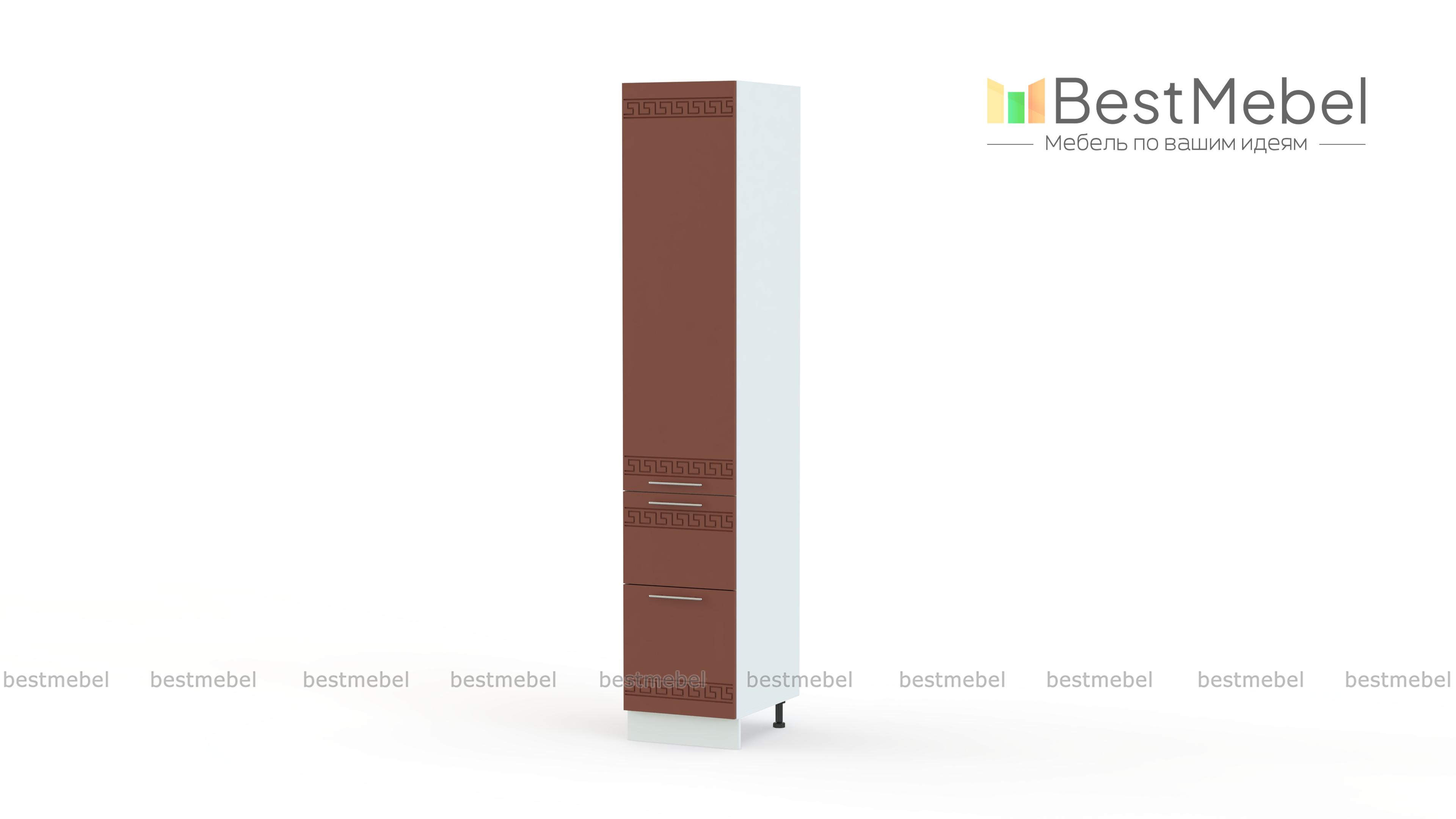 Шкаф-пенал 2 ящика 400 Греция BMS поможет оборудовать кухню удобной и эстетичной системой хранения. Эффектная высокая модель со светлыми фасадами в матовом оттенке декорирована орнаментом и станет настоящим украшением домашнего интерьера. Уместный и в комплекте, и как самостоятельный предмет меблировки, шкаф оборудован всем необходимым для размещения запасов продуктов и кухонных принадлежностей – распашным отделением и выдвижными ящиками. Купить шкаф-пенал 2 ящика 400 Греция BMS по отличной цене вы сможете в нашем интернет-магазине.