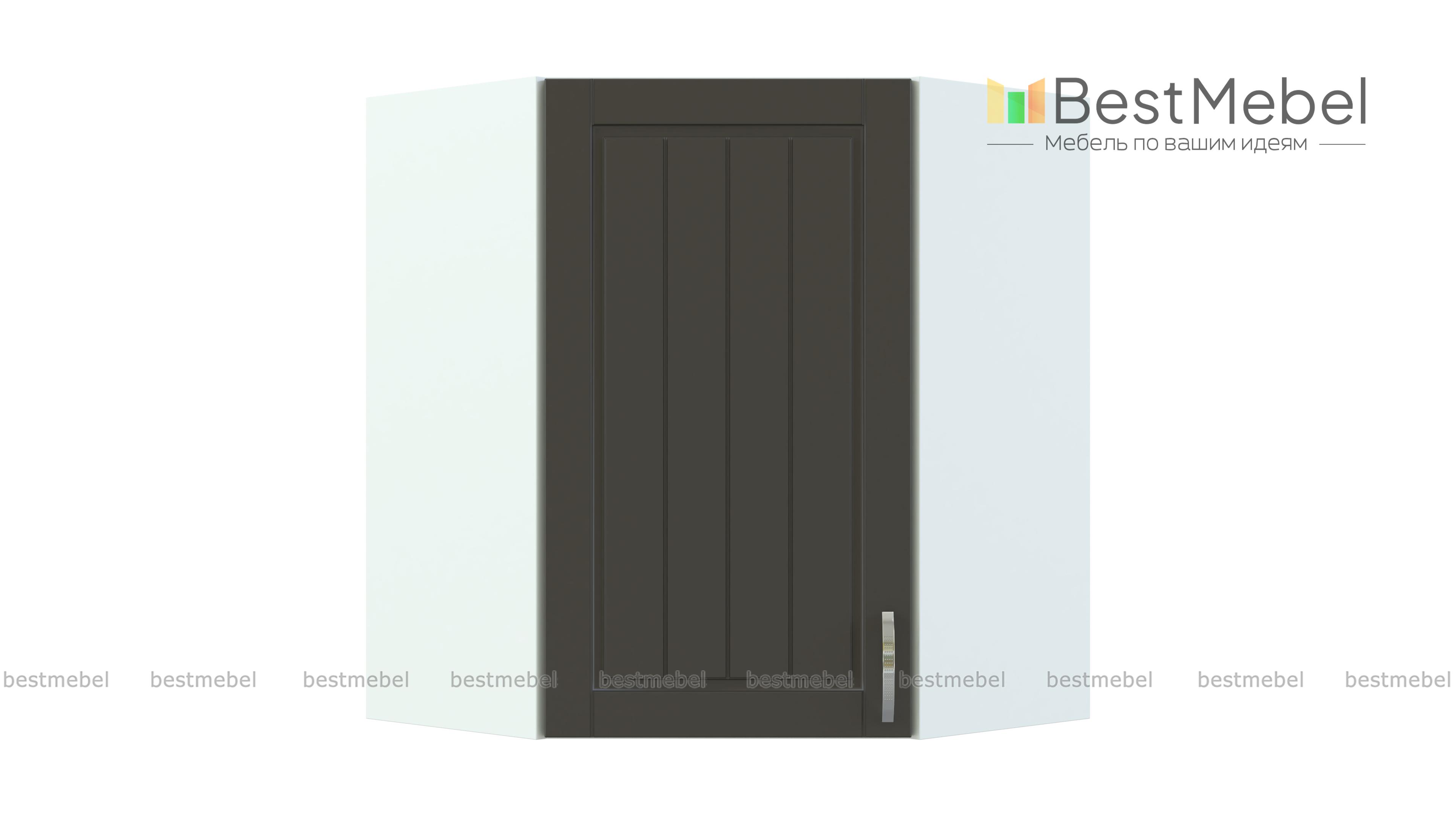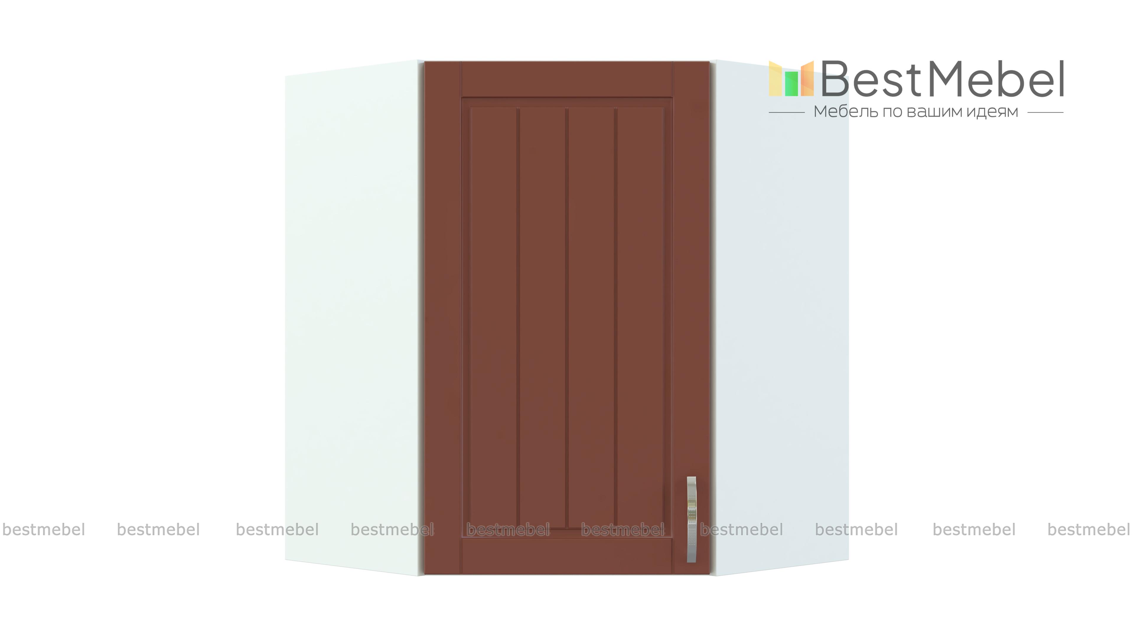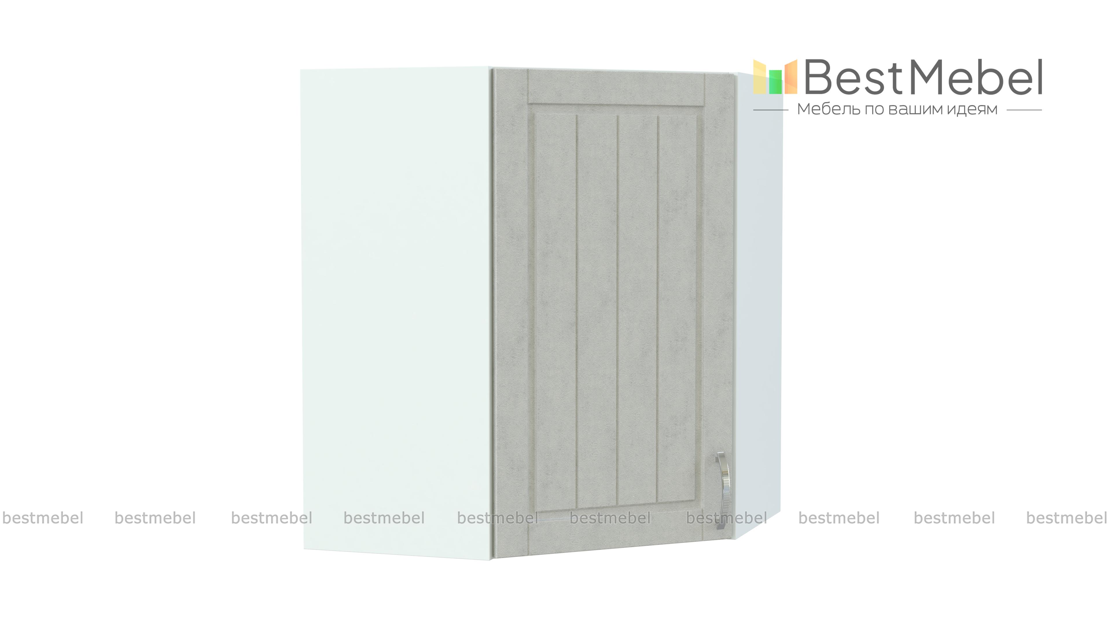 Шкаф верхний Лондон угловой BMS имеет трапециевидную форму, которая позволяет выгодно использовать особенности планировки и задействовать угловое пространство. Навесной шкаф предназначен для стыковки прямых модулей в кухонном гарнитуре и объединяет левое и правое крыло. Благодаря просторному внутреннему отделению с полкой вы сможете разместить посуду и кухонные аксессуары, а фасад светлых тонов с вертикальной фрезеровкой гармонично дополнит классический интерьер. Купить шкаф верхний Лондон угловой BMS приглашаем в наш интернет-магазин.
