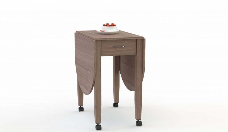 Кухонный стол Ксандра 2 BMS легко впишется даже в элегантные классические интерьеры. В сложенном виде модель представляет собой тумбу с широкой столешницей, выдвижным ящичком для мелочей и высокими опорами, дополненными колесиками для мобильности. Две складные книжкой скругленные створки превращают тумбу в небольшой столик или просторный обеденный, эффектной овальной формы. Купить кухонный стол Ксандра 2 BMS, выполненный в темном оттенке, приглашаем в наш интернет-магазин.