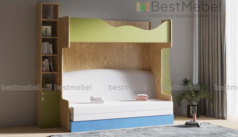 Кровать-чердак с диваном Сюрприз 25 BMS станет отличным выбором для малогабаритных помещений благодаря компактным размерам и практичной двухъярусной конструкции. Расположенное на верхнем ярусе спальное место с бортиком дополнено в нижней части раскладным диваном, а легко забраться в постель поможет наклонная лестница с хромированными перекладинами. Дополняет композицию высокий книжный стеллаж. Купить кровать-чердак с диваном Сюрприз 25 BMS приглашаем в наш интернет-магазин, подобрав интересное цветовое решение.