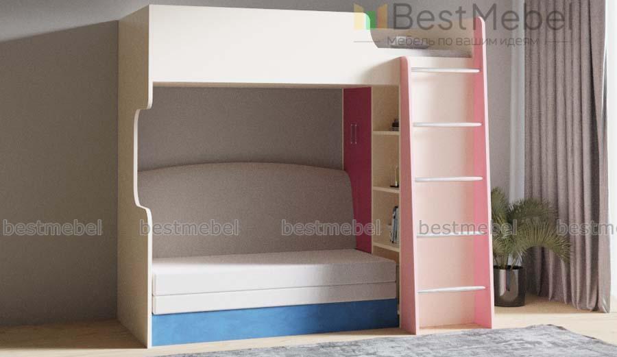 Кровать с диваном Карон 06 BMS оборудована всем самым необходимым для комфортного отдыха и хранения детских вещей. На втором ярусе располагается спальное место с ограничителем, а на первом – распашной шкаф для одежды, книжный стеллаж, лестница с металлическими трубными перекладинами и уютный диван. Несколько ярких цветовых решений на выбор помогут легко вписать модель в современный интерьер. Купить кровать с диваном Карон 06 BMS приглашаем в наш интернет-магазин по доступной цене.
