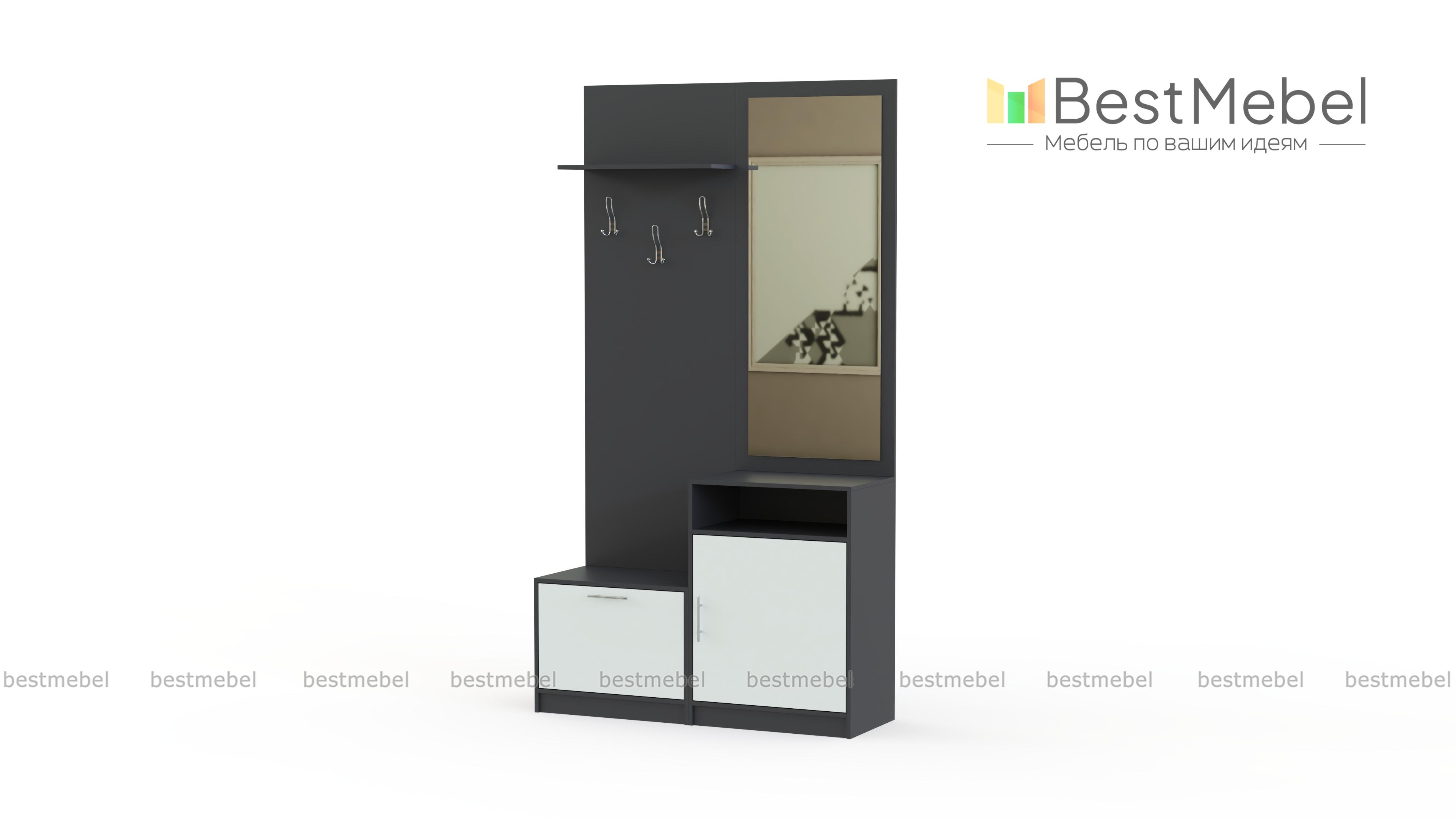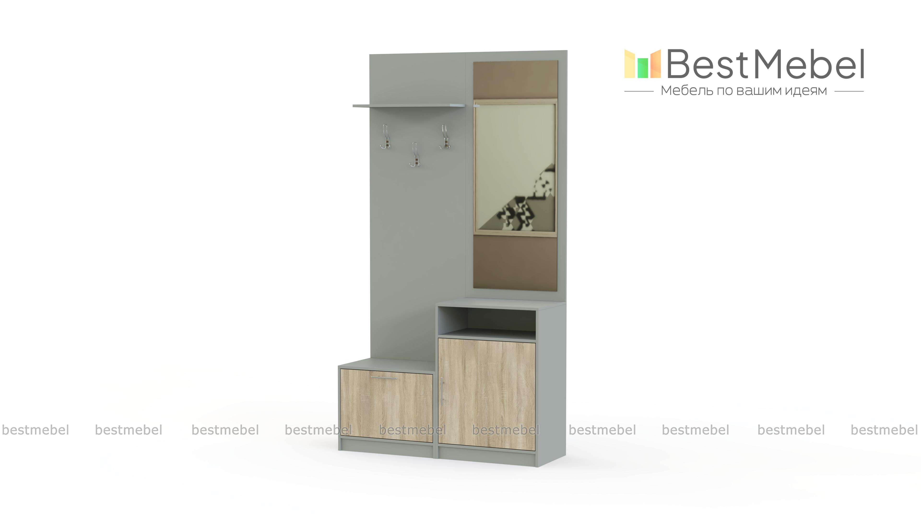 Прихожая Трис BMS – компактная и уютная модель, которая предназначена для правильного обустройства небольшого коридора. Для хранения обуви, комплект оборудован двумя тумбами. А одежду можно распределить на крючки. Миниатюрная полка пригодится для шляпок и шапок. Имеется удобное зеркало в составе этой модели. На сайте можно скорректировать оттенок и параметры изделия. Купить прихожую Трис BMS можете на сайте нашего фирменного магазина по низкой цене.