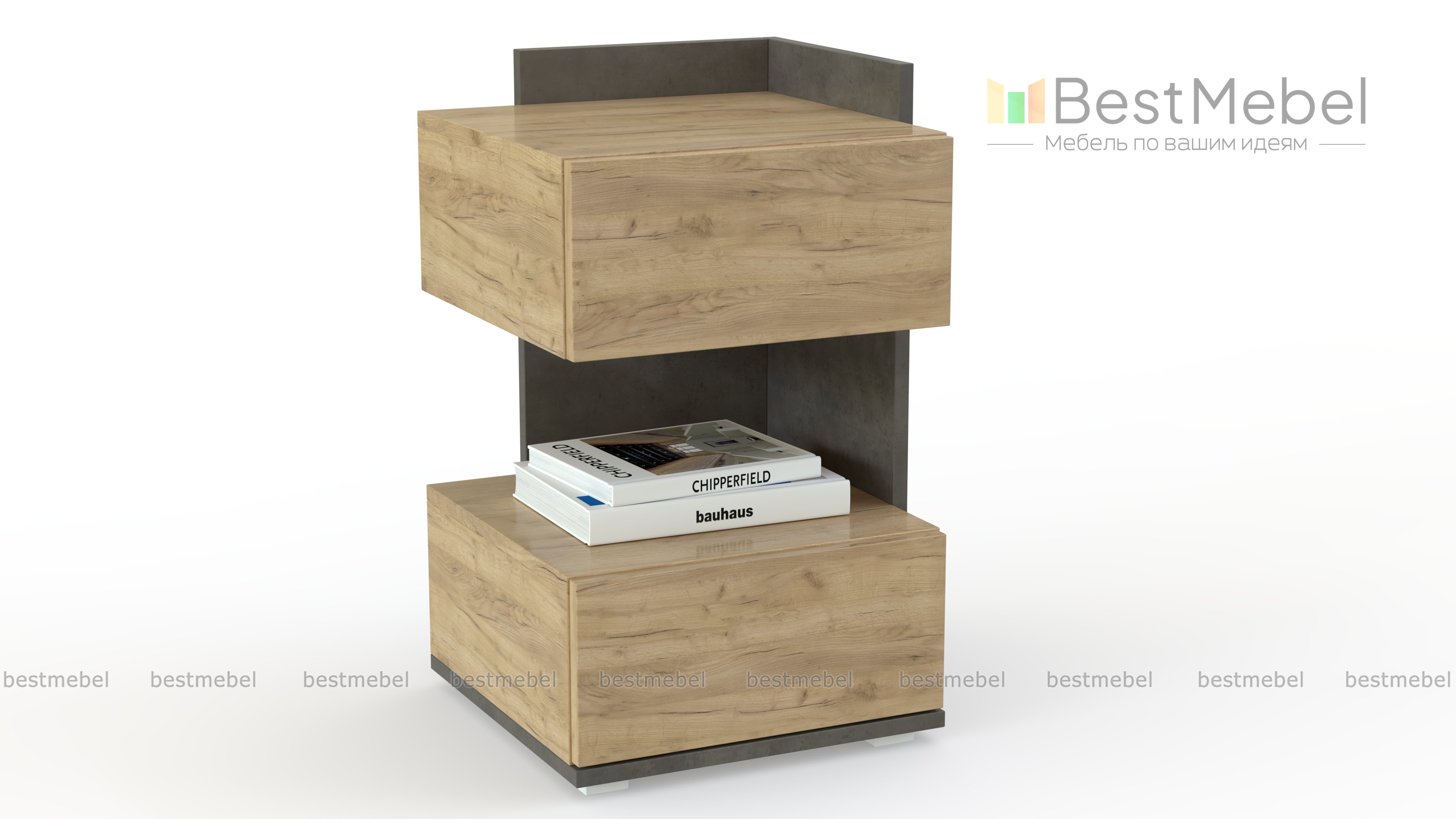 Тумба Хойя 18 BMS – это модная геометрия линий и трендовая природная палитра. Конструкция из двух кубических модулей, разделенных нишей и оборудованных глубокими выдвижными ящиками, оптимальна для хранения важных мелочей и эффектного размещения декора. В качестве прикроватной тумба составит стильный комплект с моделями современного дизайна. Фасады выполнены из пластика, монтаж скрытый.
