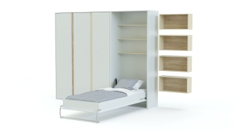 Шкаф-кровать трансформер Фиона 34 BMS – стильная альтернатива привычной мебели в интерьере современной молодежной комнаты. Креативный дизайн сочетается с высокой функциональностью в универсальной композиции 2 в 1. Вместительный шкаф для белья и одежды дополнен модулем-трансформером с откидной кроватью и оригинальными навесными полками для книг и декоративных мелочей. Спальное место раскладывается при помощи вертикального механизма, внутри ниши находятся открытые полки. Купить шкаф-кровать трансформер Фиона 34 BMS приглашаем к нам в интернет-магазин.
