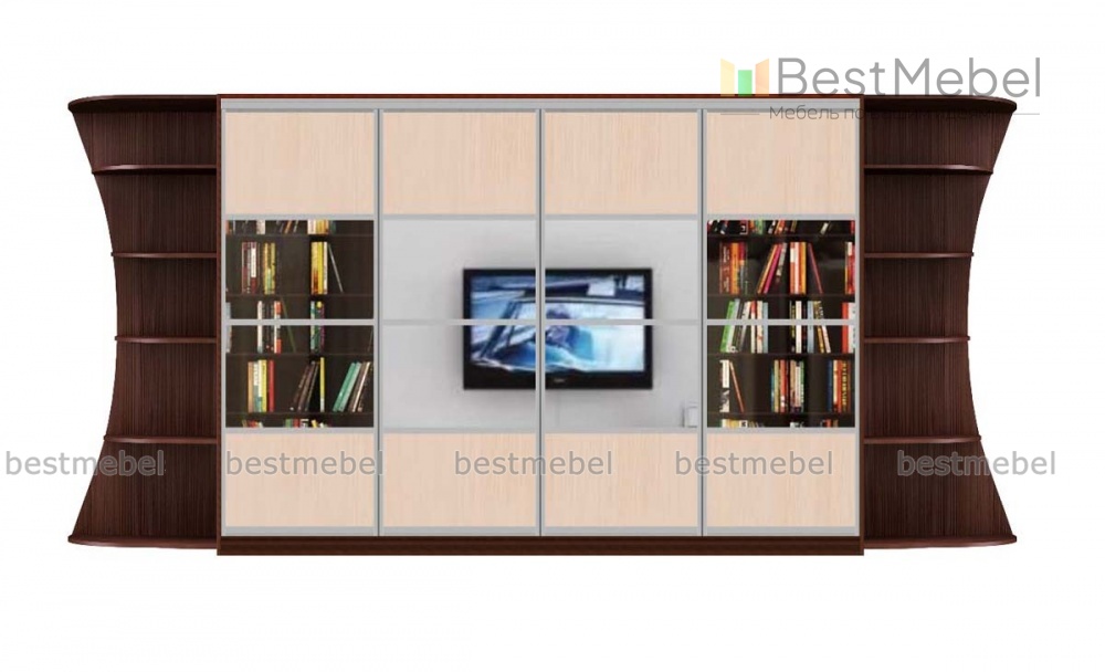 Шкаф-купе Денни 5.2 BMS гармонично впишется в интерьер просторной гостиной и поможет создать комфортный и запоминающийся интерьер. Композиция включает в себя четырехдверный шкаф и расположенные симметрично торцевые фигурные стеллажи для предметов декора и необходимых под рукой мелочей. В оформлении фасада скомбинированы вставки светлых древесных тонов, прозрачное стекло и зеркала, придающие комнате дополнительную глубину и объем. Купить Шкаф-купе Денни 5.2 BMS выгодно вы сможете в нашем интернет-магазине.