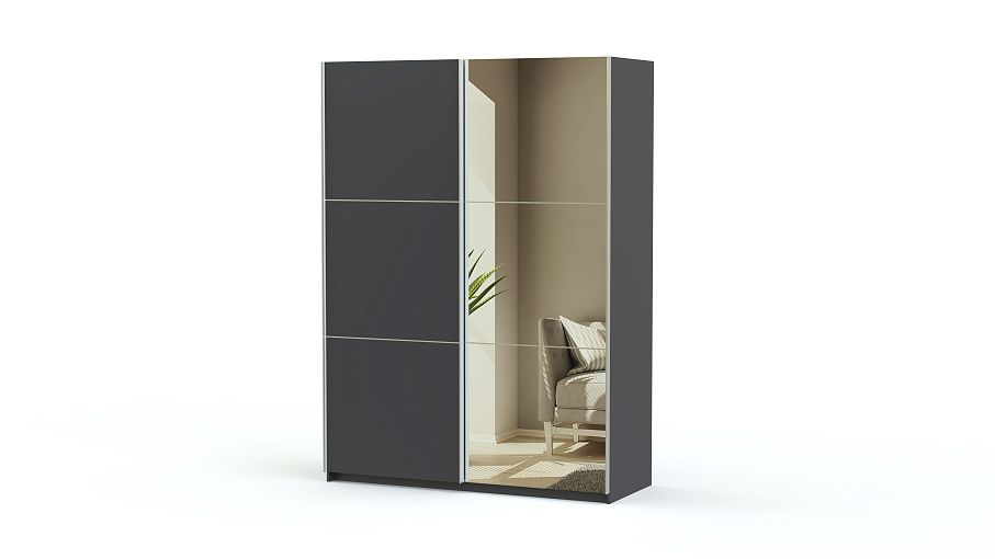 Дизайн фасада может сочетать в себе ДСП разного цвета или ламинированную плиту, дополненную зеркалом. Создается впечатление, будто два отдельных и компактных шкафа просто поставили рядом. Благодаря этому шкаф смотрится не громоздко.