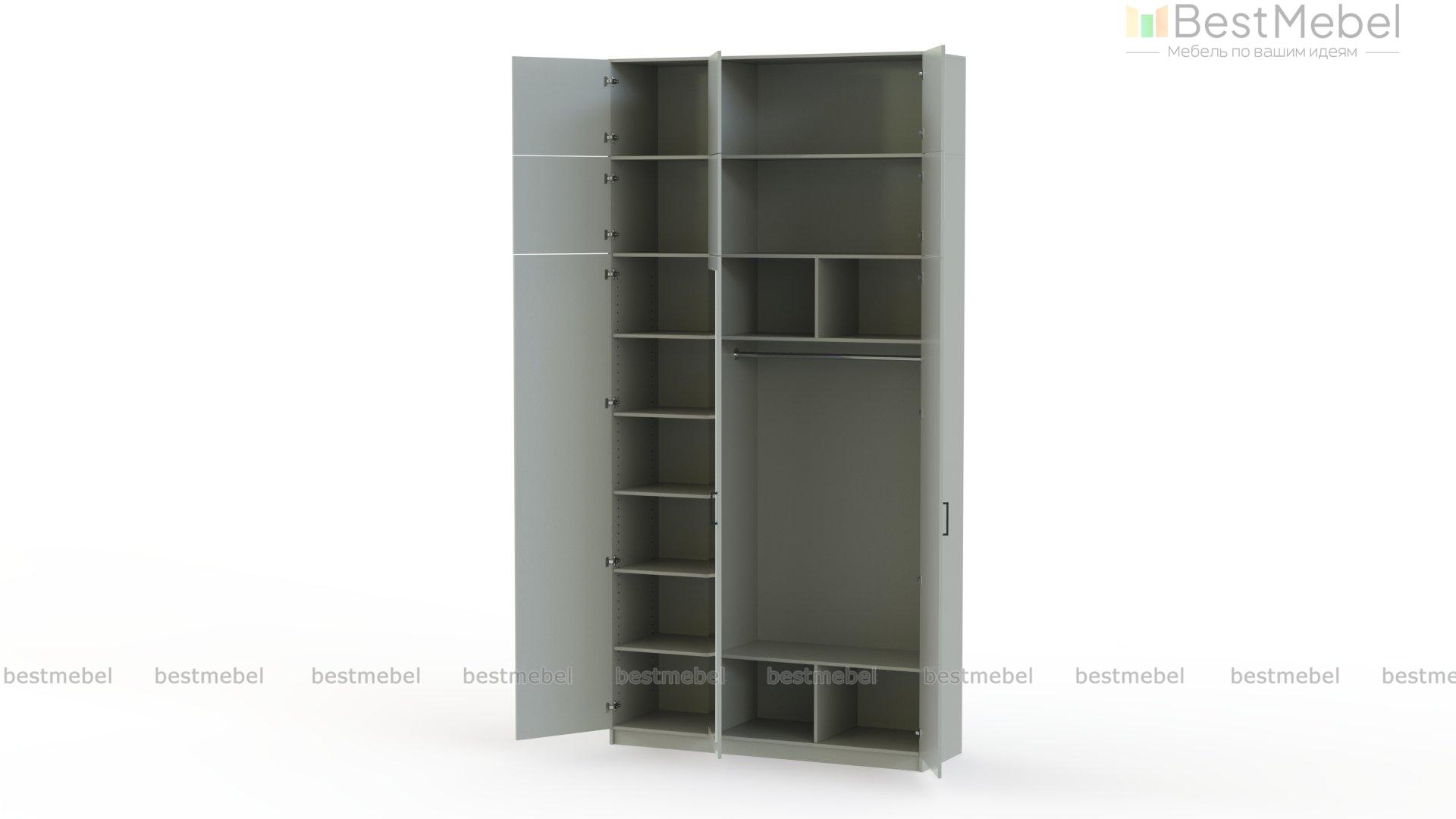 Шкаф распашной Остин Уно 18 BMS с двумя ярусами антресолей позволяет рационально использовать пространство. За двумя дверцами справа скрыты штанга для одежды на вешалках и две секции с перегородками, а слева располагаются регулируемые по высоте бельевые полки. Ростовое зеркало на фасаде добавляет шкафу функциональности, заменяя отдельный предмет меблировки. Купить шкаф распашной Остин Уно 18 BMS вы сможете в нашем интернет-магазине с индивидуальным подбором цвета и размеров.