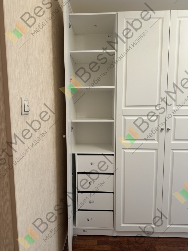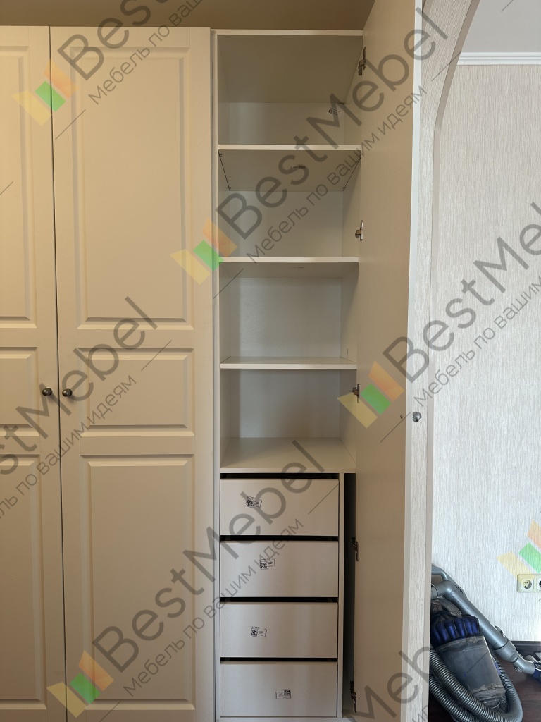 Шкаф понравился, высоту заказывала выше, чем стандарт. Качество хорошее, но хотелось бы , чтобы дверцы фасадов с внутренней стороны были окрашены на два раза, как и внешняя сторона. По наполнению все норм, изготовили очень быстро, доставка и сборка тоже норм! Спасибо!К покупке однозначно рекомендую!Буду еще один шкаф здесь покупать )