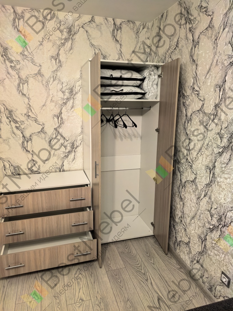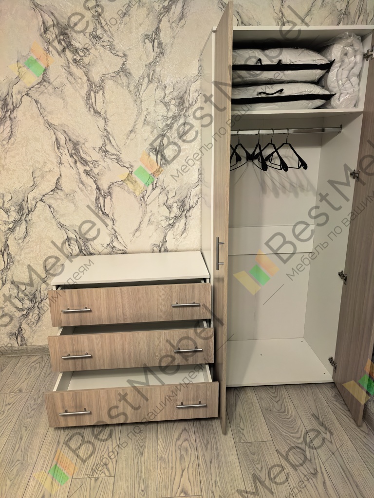 Вот, что мне нравится в БестМебель, что можно всё изменить по своим параметрам, мне нужен был узкий шкаф, и ещё поменяла наполнение, сделала полки помимо вешалок, очень довольна, так как в комнате у сыновей мало места совсем, сборка легка, вместе с мужем собрали запросто, очень довольна, рекомендую однозначно
