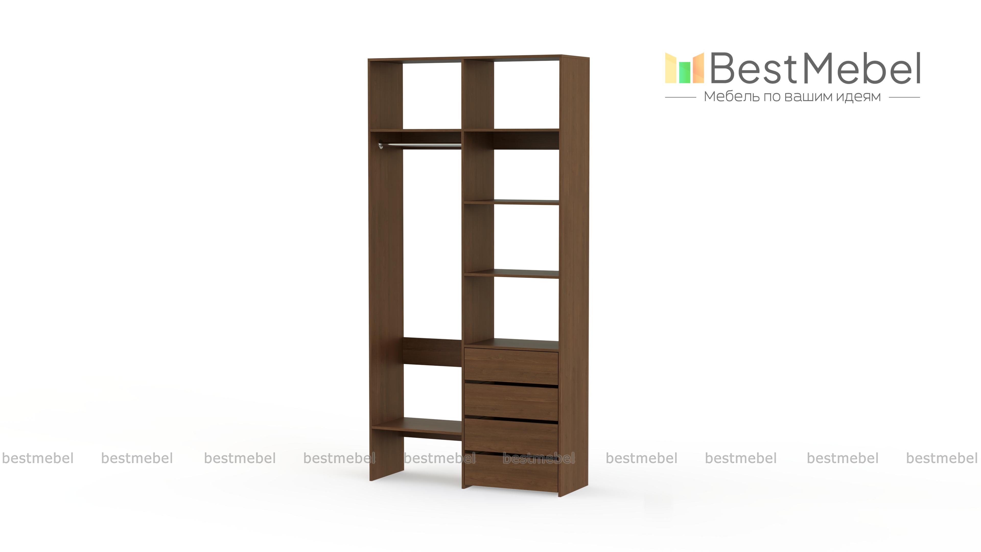 Стеллаж для одежды Мирта 2 BMS поможет вам организовать хранение дома или в торговом зале. Открытая конструкция со штангой, полками и рядом из четырех выдвижных ящиков подходит для размещения одежды на вешалках, коробок с обувью и мелкого трикотажа. Материал изготовления – устойчивая к износу и долговечная ламинированная плита в базовом оттенке. Купить стеллаж для одежды Мирта 2 BMS приглашаем в наш интернет-магазин, подобрав необходимые размеры и цвет по каталогу.