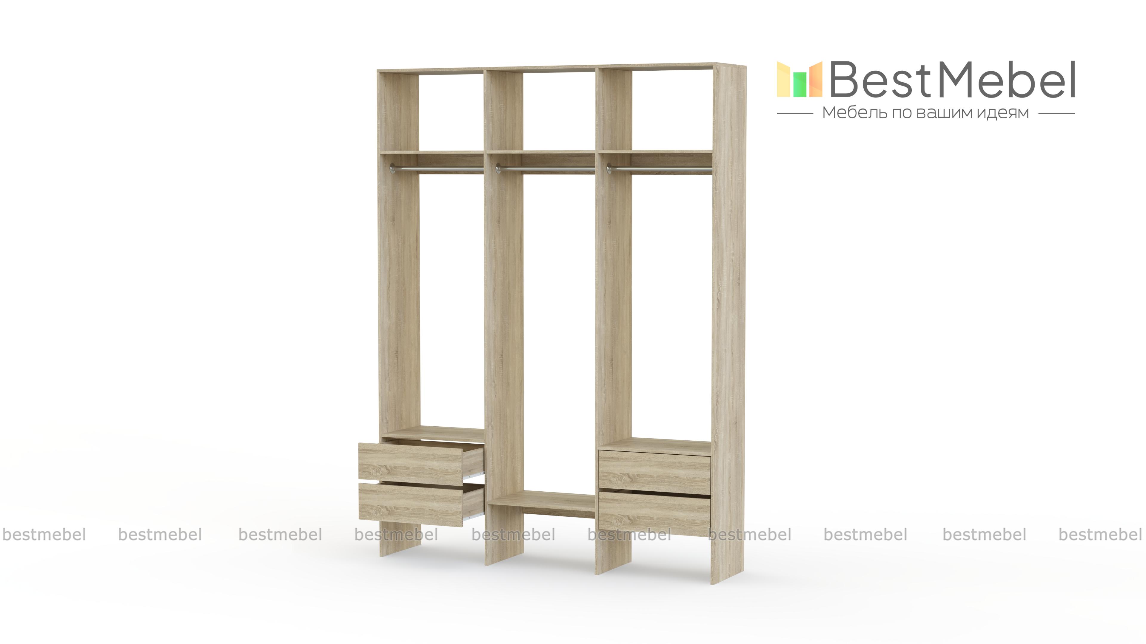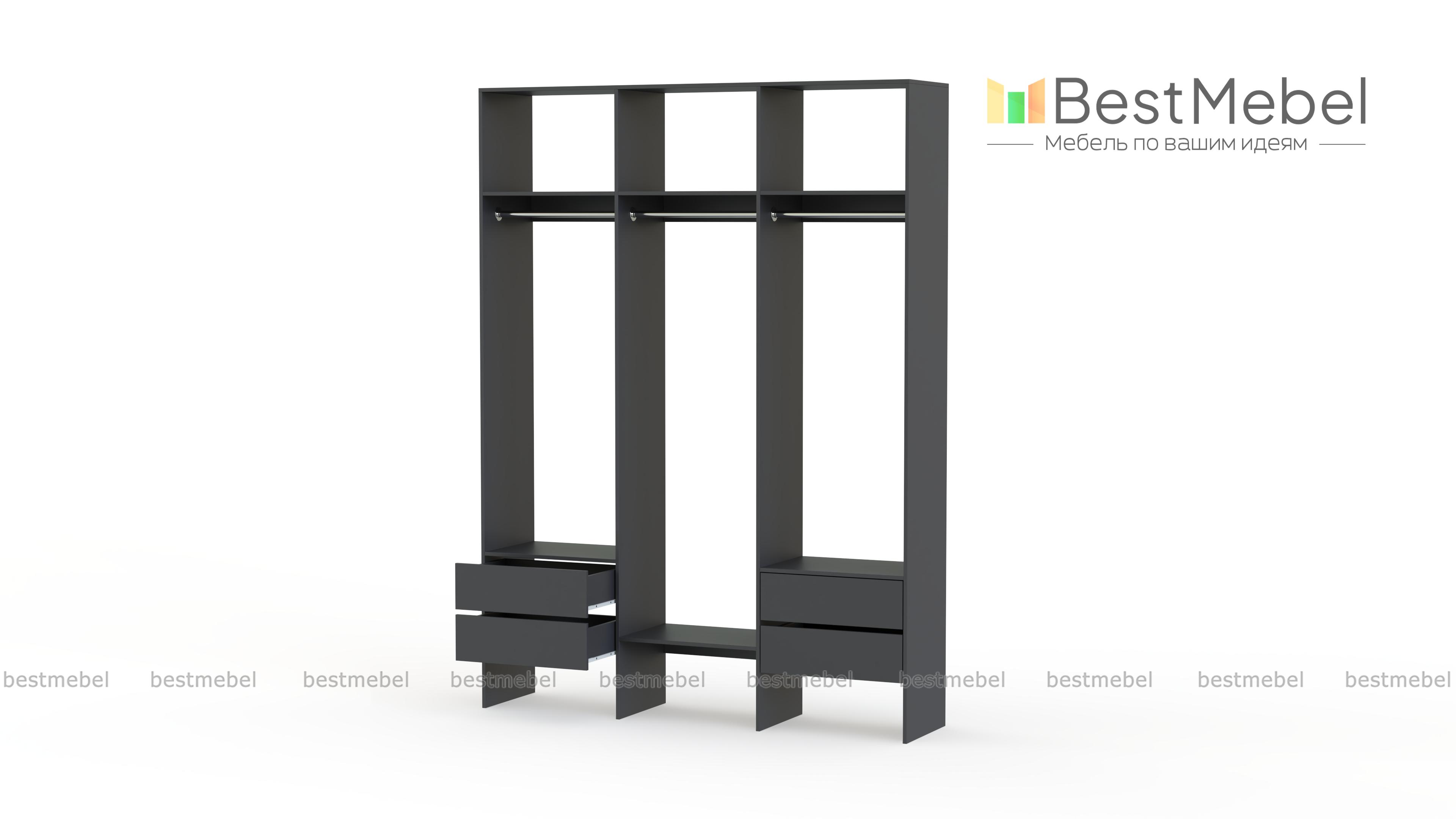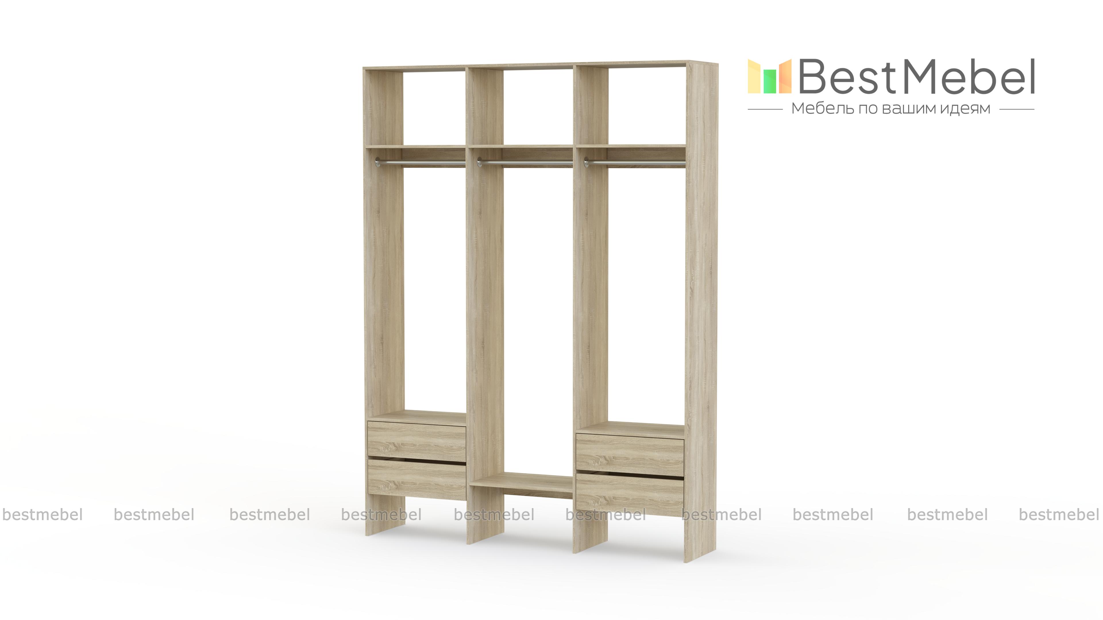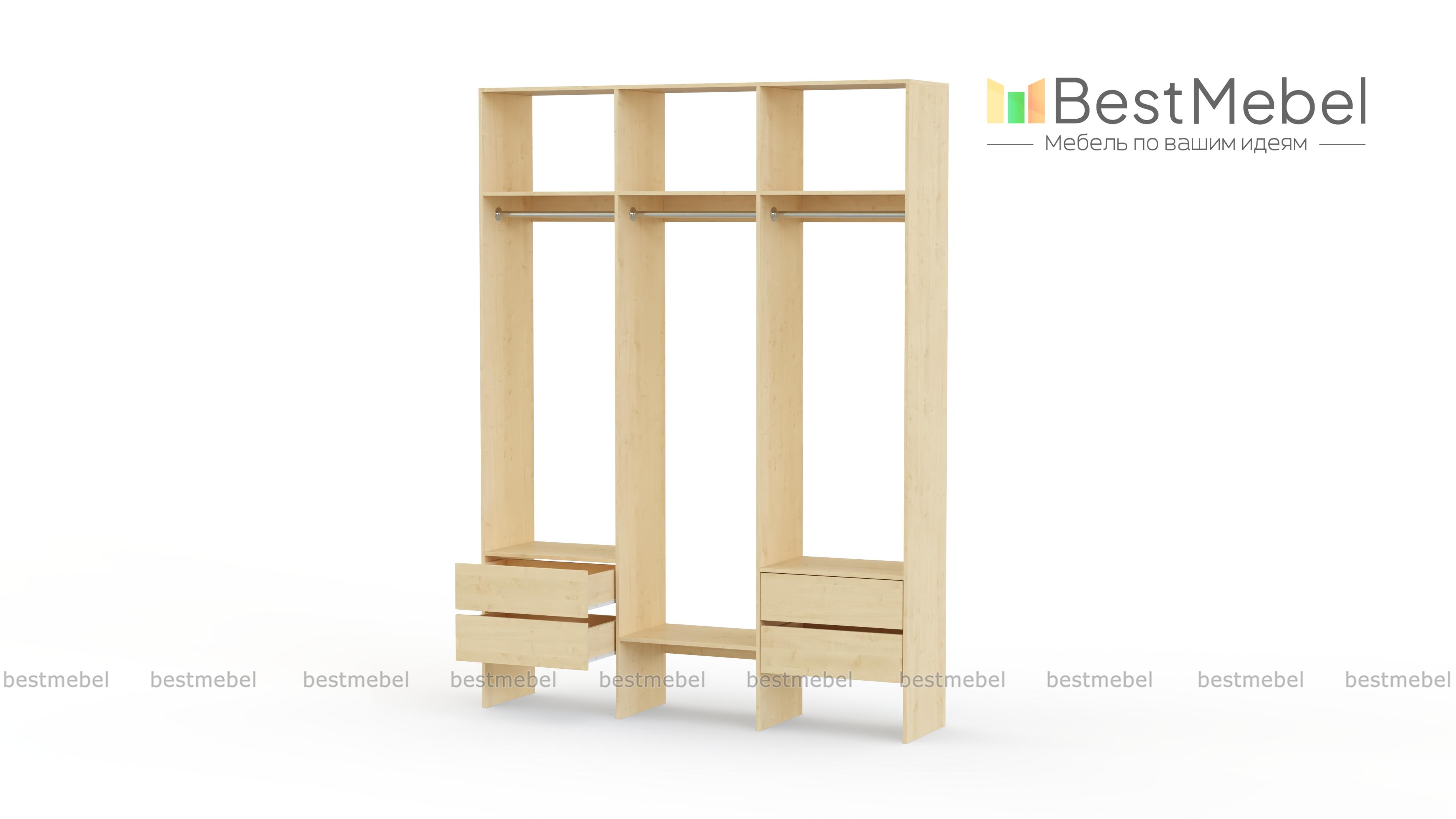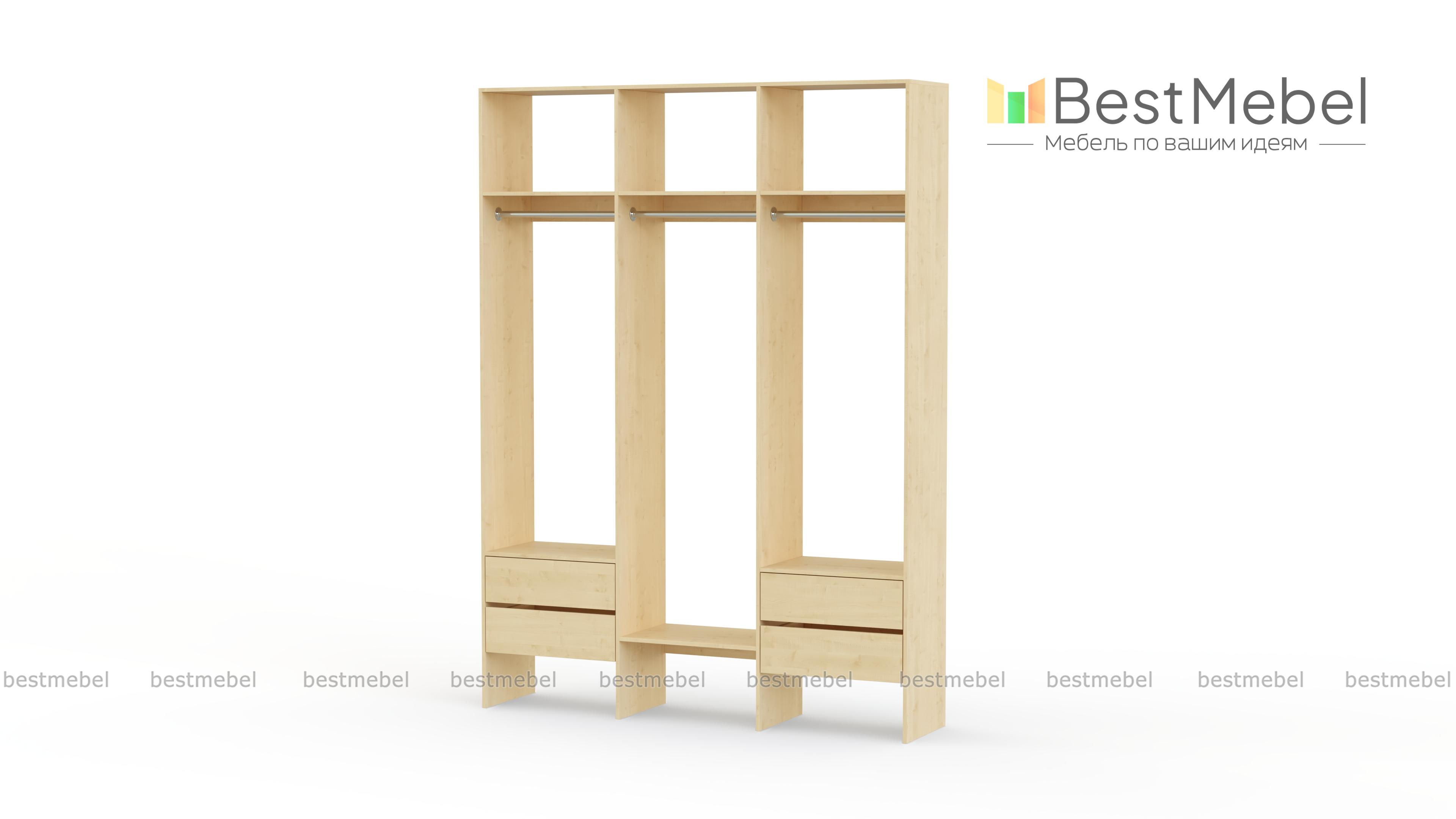 Стеллаж для одежды Мирта 58 BMS — это удобная база для вашей прихожей или гардеробной комнаты. Три перекладины позволяют разместить вешалки с короткой и длинной одеждой, для коробок и сложенных вещей предусмотрены полки, а для мелочей — две пары выдвижных ящиков. Лаконичное оформление и возможность выбора оттенка делают трехсекционный стеллаж практически универсальным. Купить стеллаж для одежды Мирта 58 BMS, изготовленный по вашим размерам, приглашаем в наш интернет-магазин.