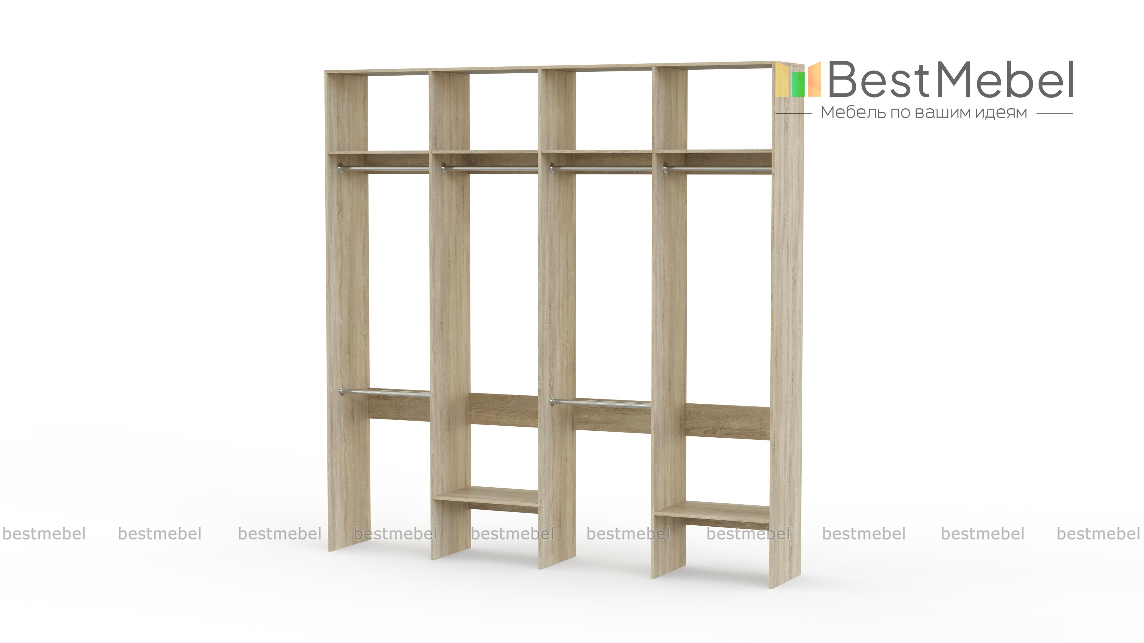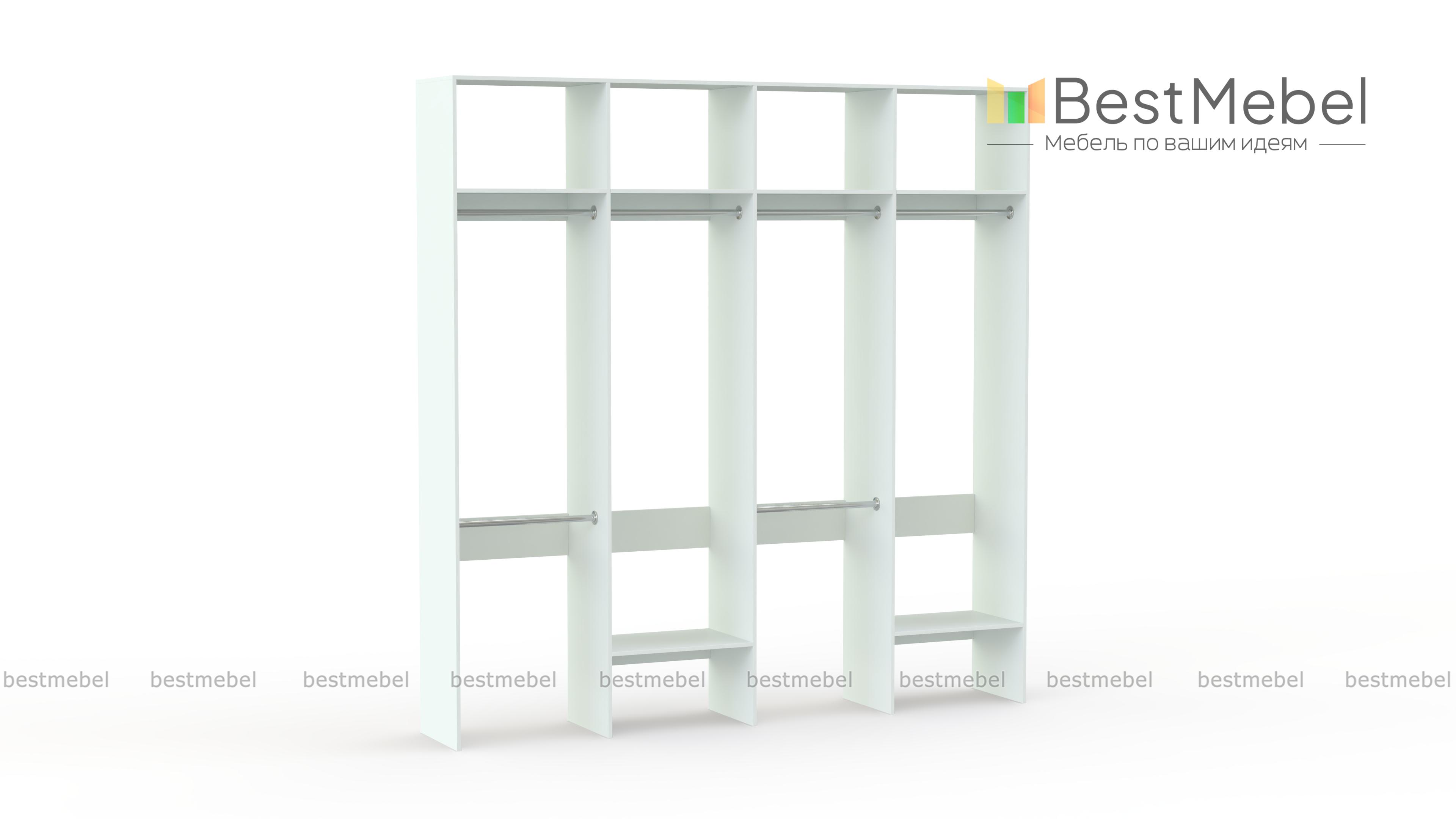 Стеллаж для одежды Мирта 62 BMS представляет собой внешне легкую и вместительную конструкцию. Разделенный на четыре секции, стеллаж оборудован расположенными на разной высоте штангами для короткой и длинной одежды, верхними и нижними полками. Отличное решение для гардеробной, стеллаж экономит пространство и обеспечивает аккуратное хранение одежде и обуви. Купить стеллаж для одежды Мирта 62 BMS, подобрав необходимые размеры, вы сможете на сайте нашего интернет-магазина.