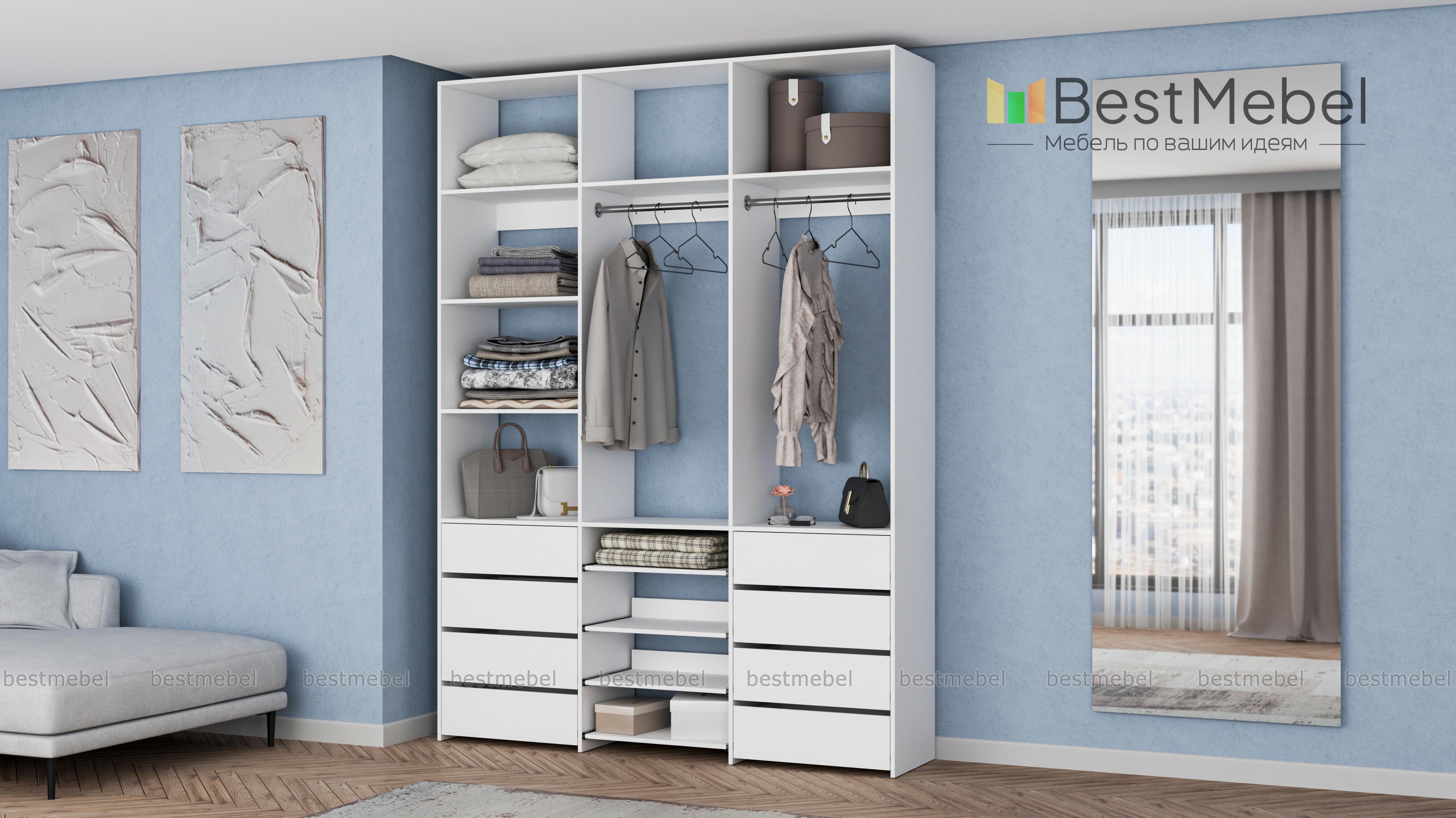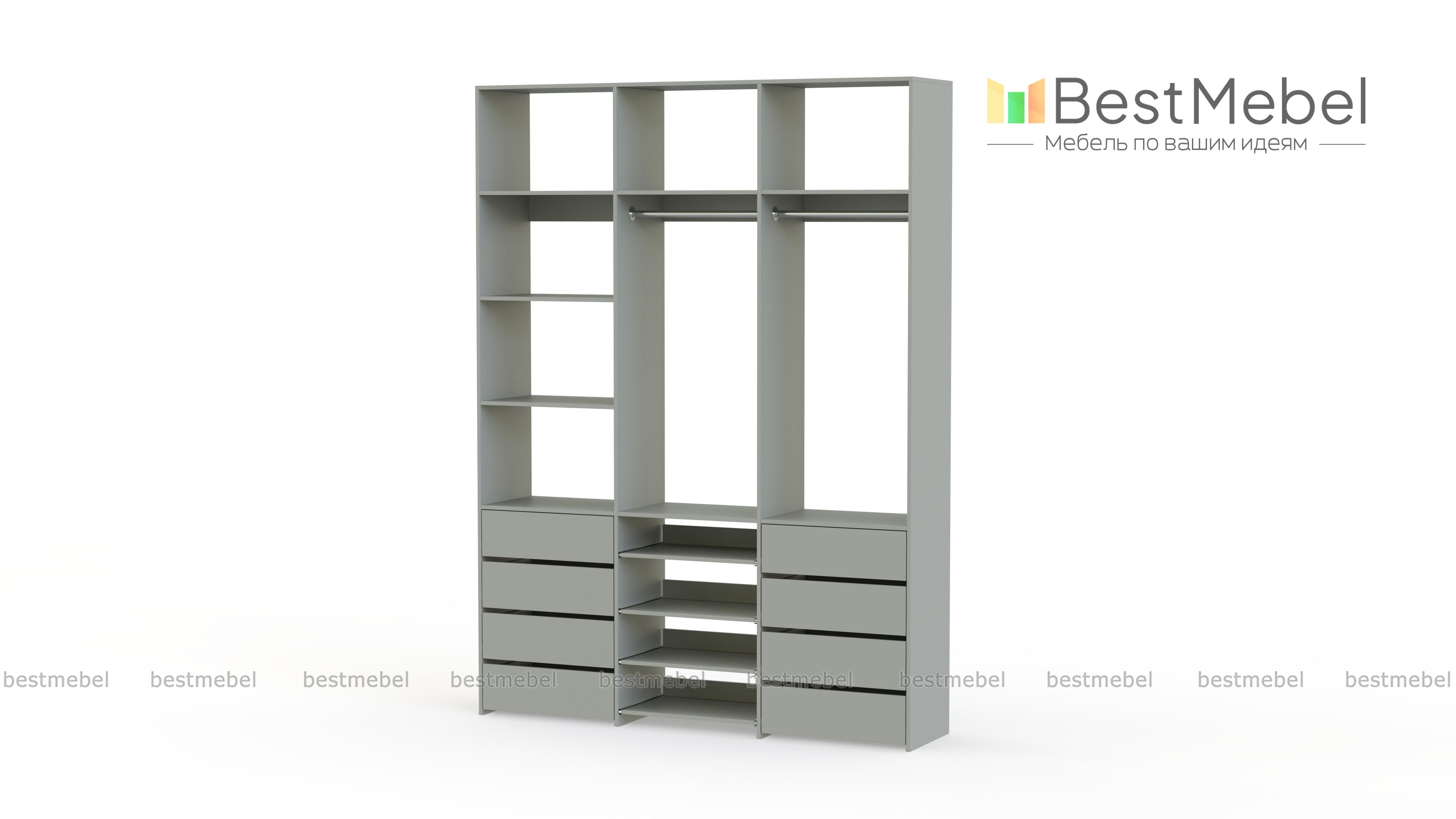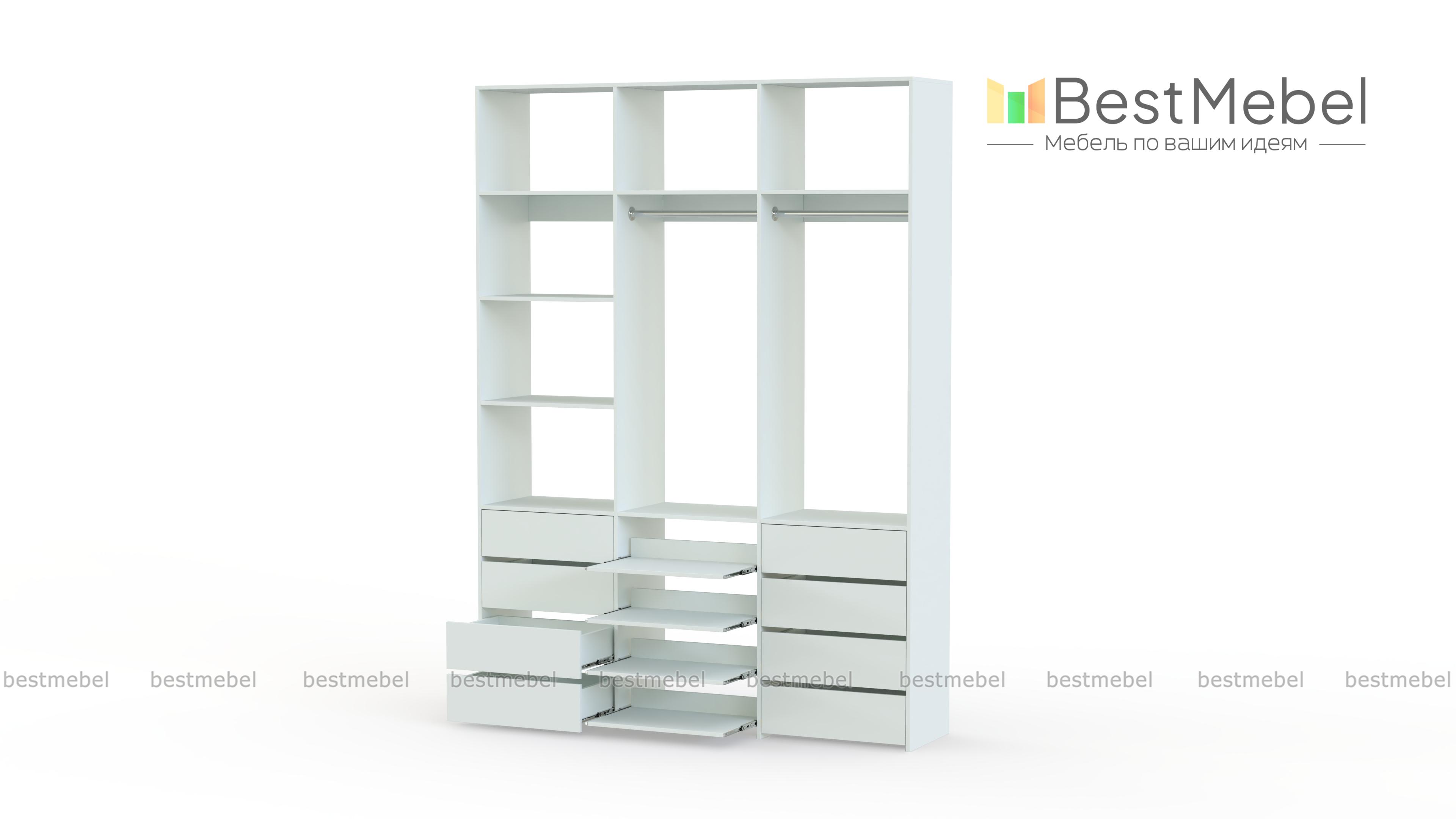 Стеллаж для одежды Мирта 97 BMS имеет открытую конструкцию и облегчит доступ к вещам. Две секции со штангами дополнены просторными полками для сложенных вещей и коробок, а в нижней части располагаются два ряда ящиков для белья и мелочей и выдвижные панели. Нейтральный древесный оттенок подходит почти к любому интерьеру, а ламинированная плита обладает прочностью и долговечностью. Купить стеллаж для одежды Мирта 97 BMS, изготовленный по вашим размерам, приглашаем в наш интернет-магазин.