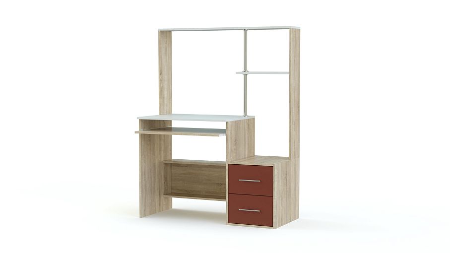 Компьютерный стол МБ 46.1 BMS будет отличным вариантом для молодежной комнаты благодаря компактным размерам и яркому современному дизайну. Визуально легкая модель оборудована удобной для письма и работы за компьютером столешницей, выдвижной полкой для клавиатуры, открытыми нижними полками, тумбой с двумя ящиками, совмещенной с боковиной, и надстройкой на хромированной опоре. Купить компьютерный стол МБ 46.1 BMS, подобрав одно из эффектных цветовых решений, приглашаем недорого в наш интернет-магазин.