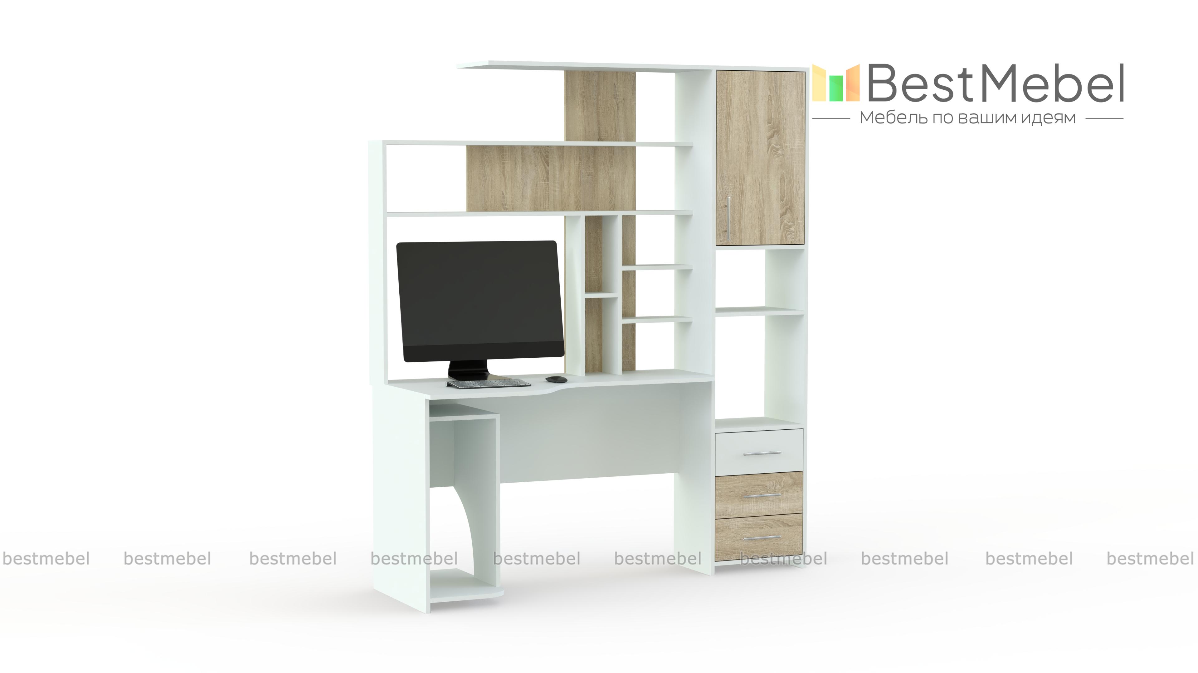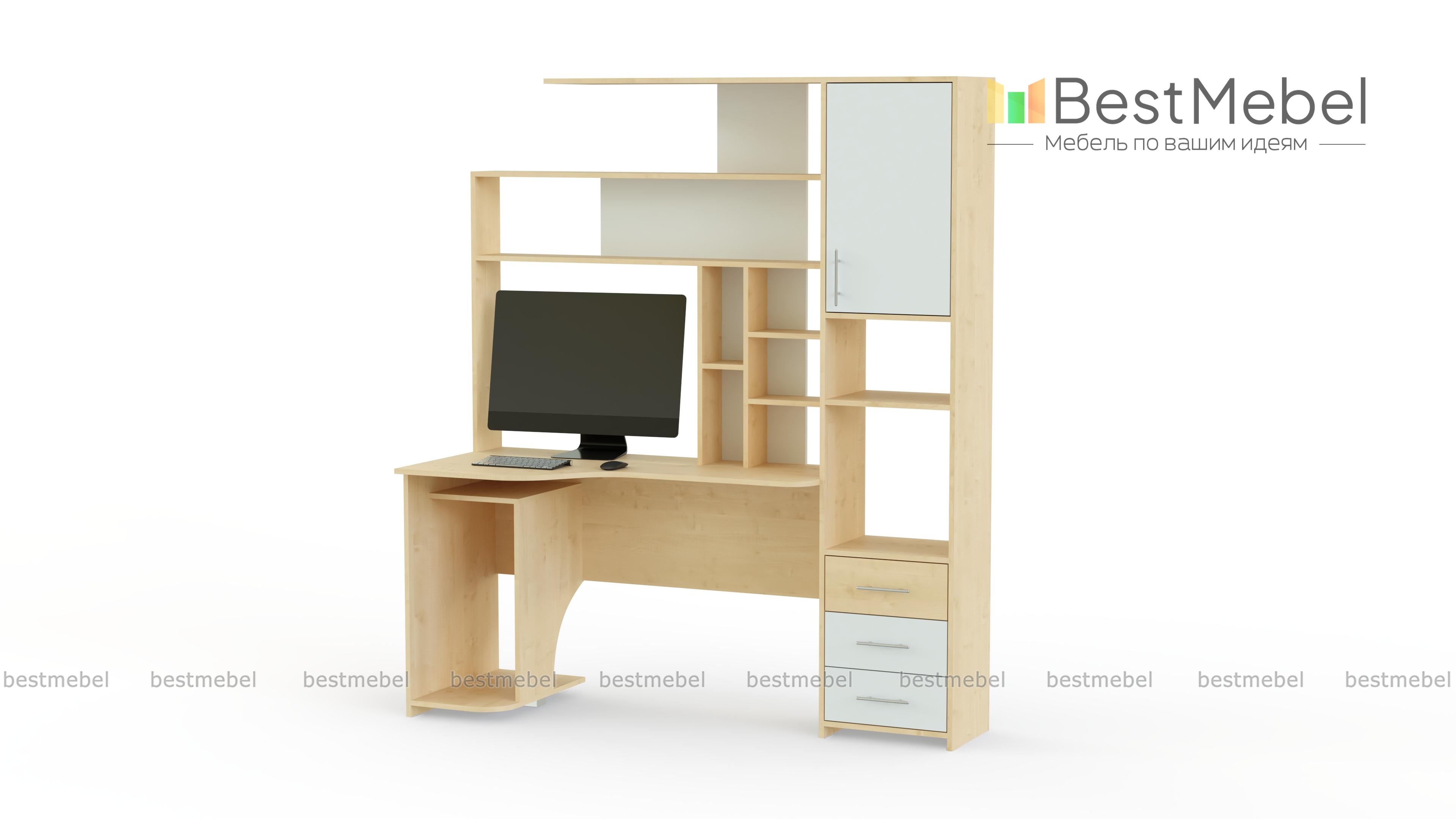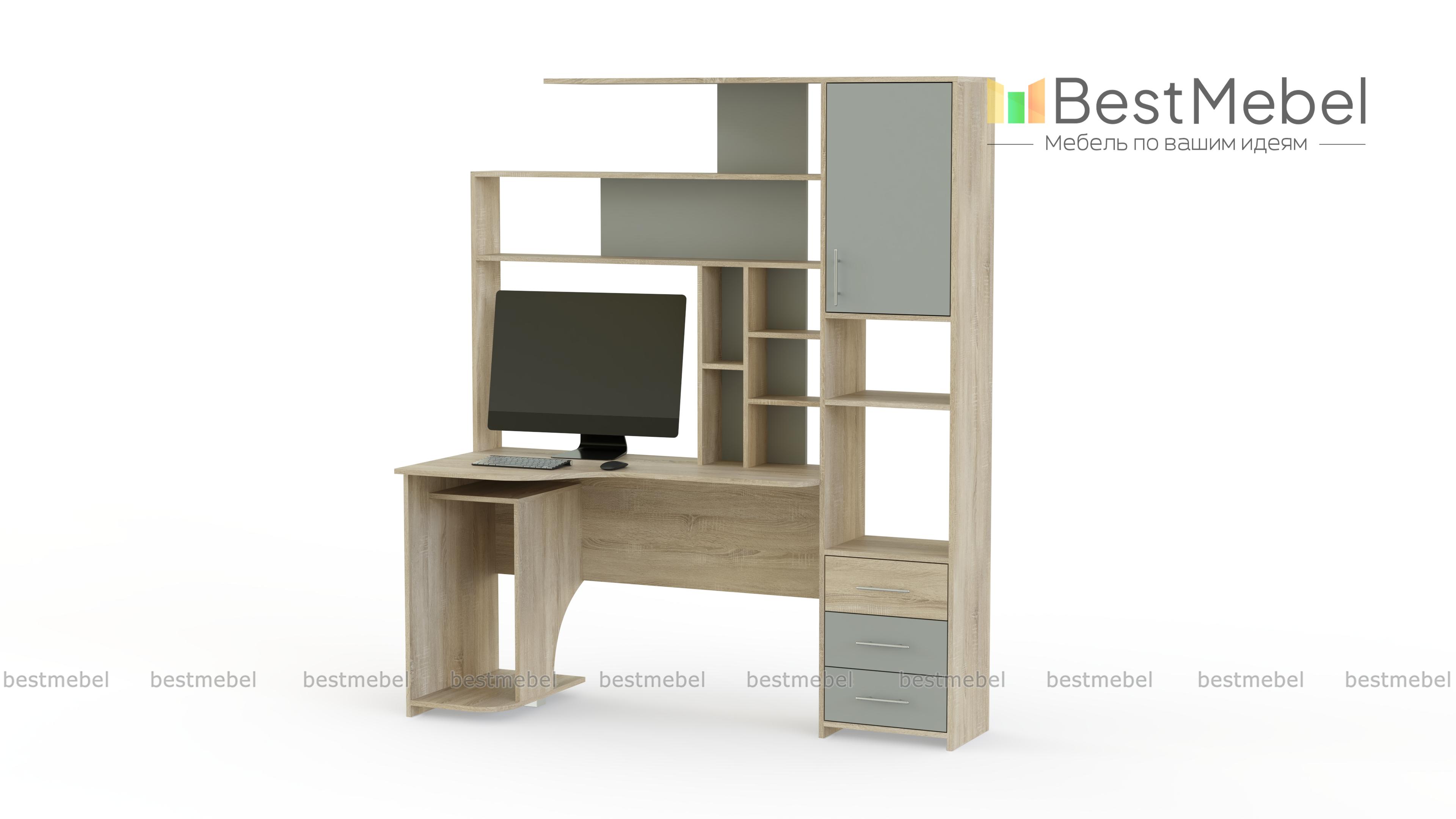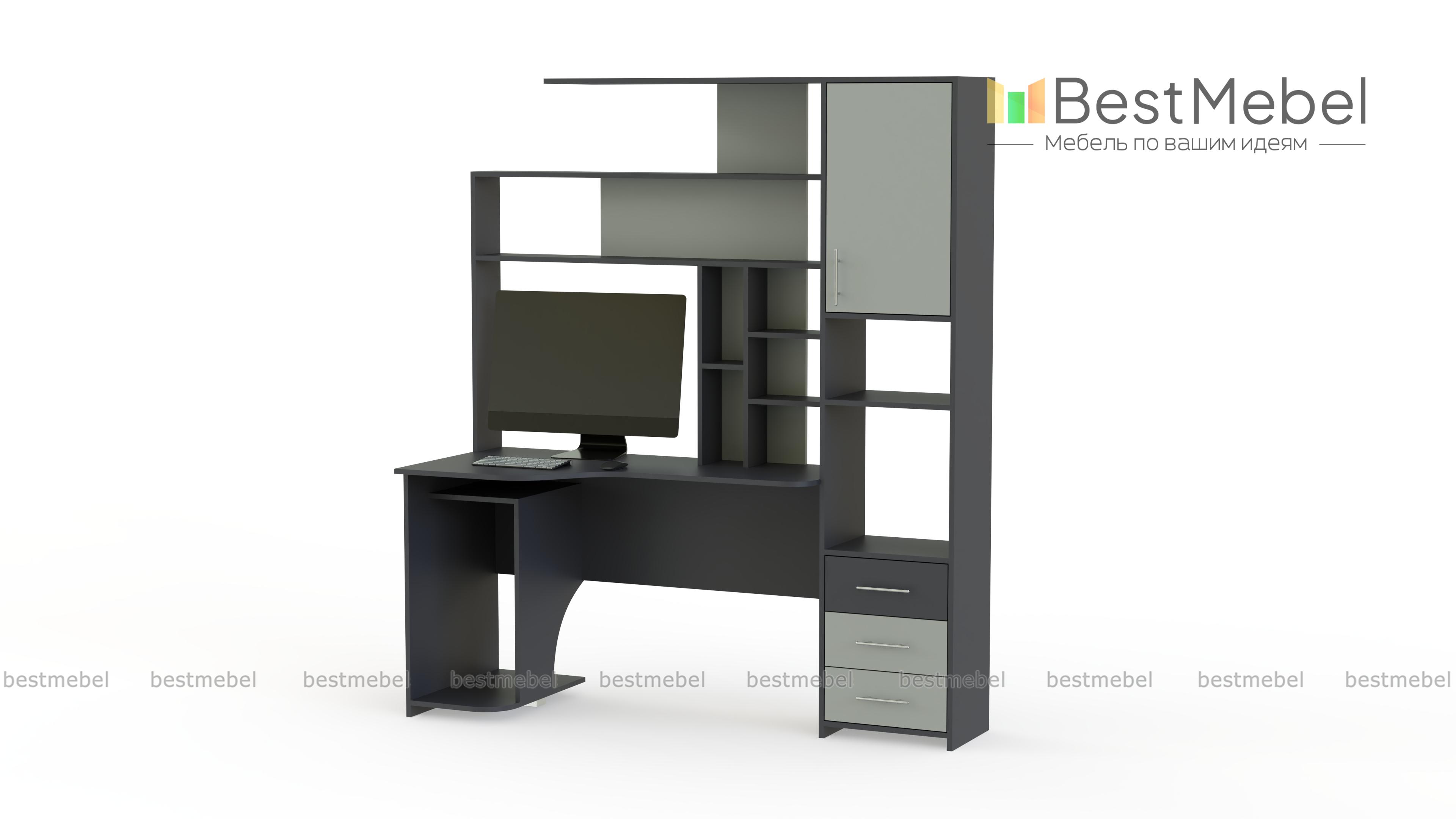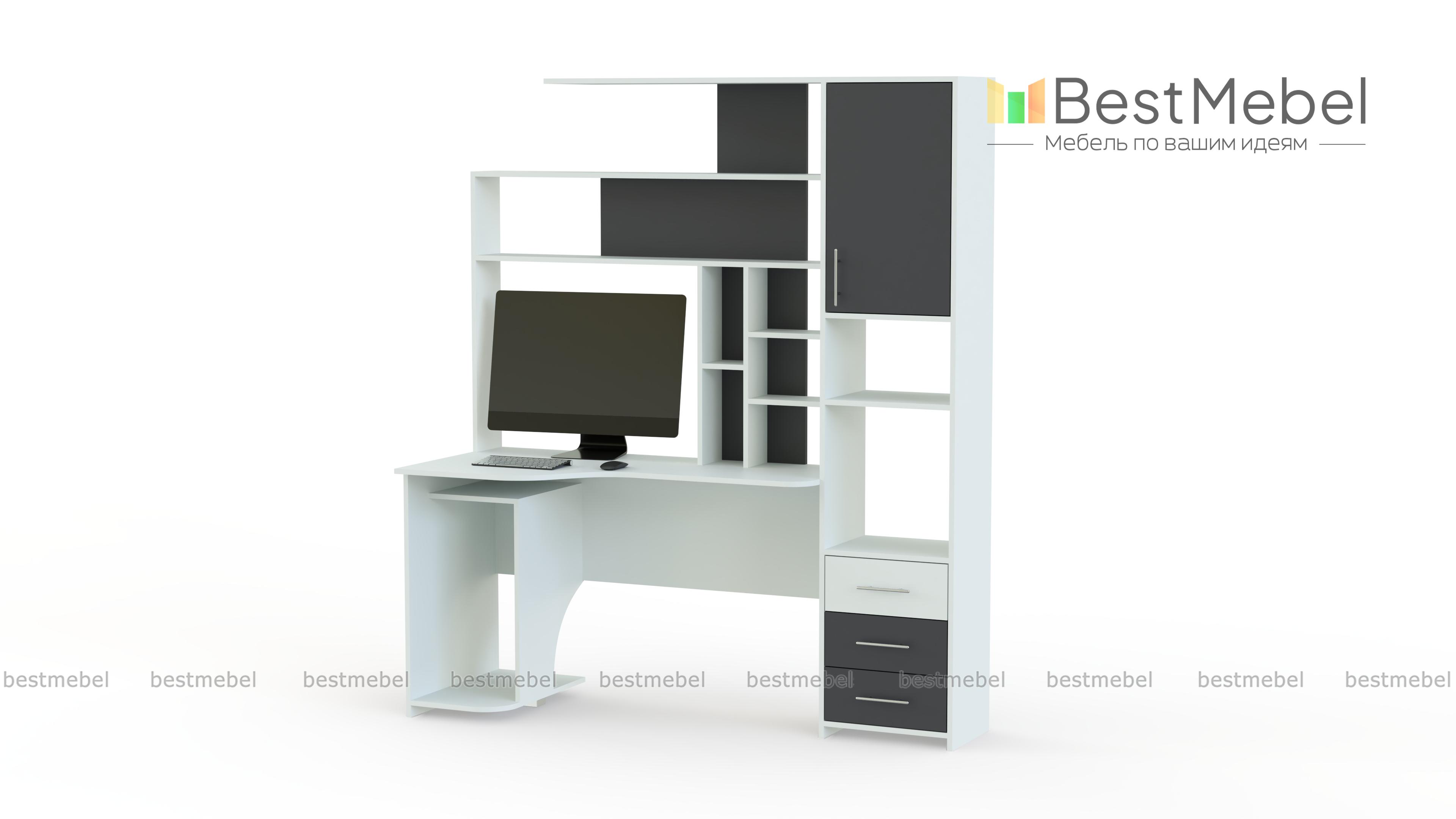 Стол компьютерный Тип 6 BMS поможет вам обустроить комфортную рабочую зону. Совмещенная со стеллажом, модель оборудована продуманной системой хранения из открытых полок, выдвижных ящиков и распашных отделений. Эргономичный вырез столешницы обеспечит правильное положение тела во время работы или учебы, для системного блока под столом отведена просторная ниша. Купить стол компьютерный Тип 6 BMS с выбором размеров, цвета и фурнитуры вы сможете в нашем интернет-магазине.
