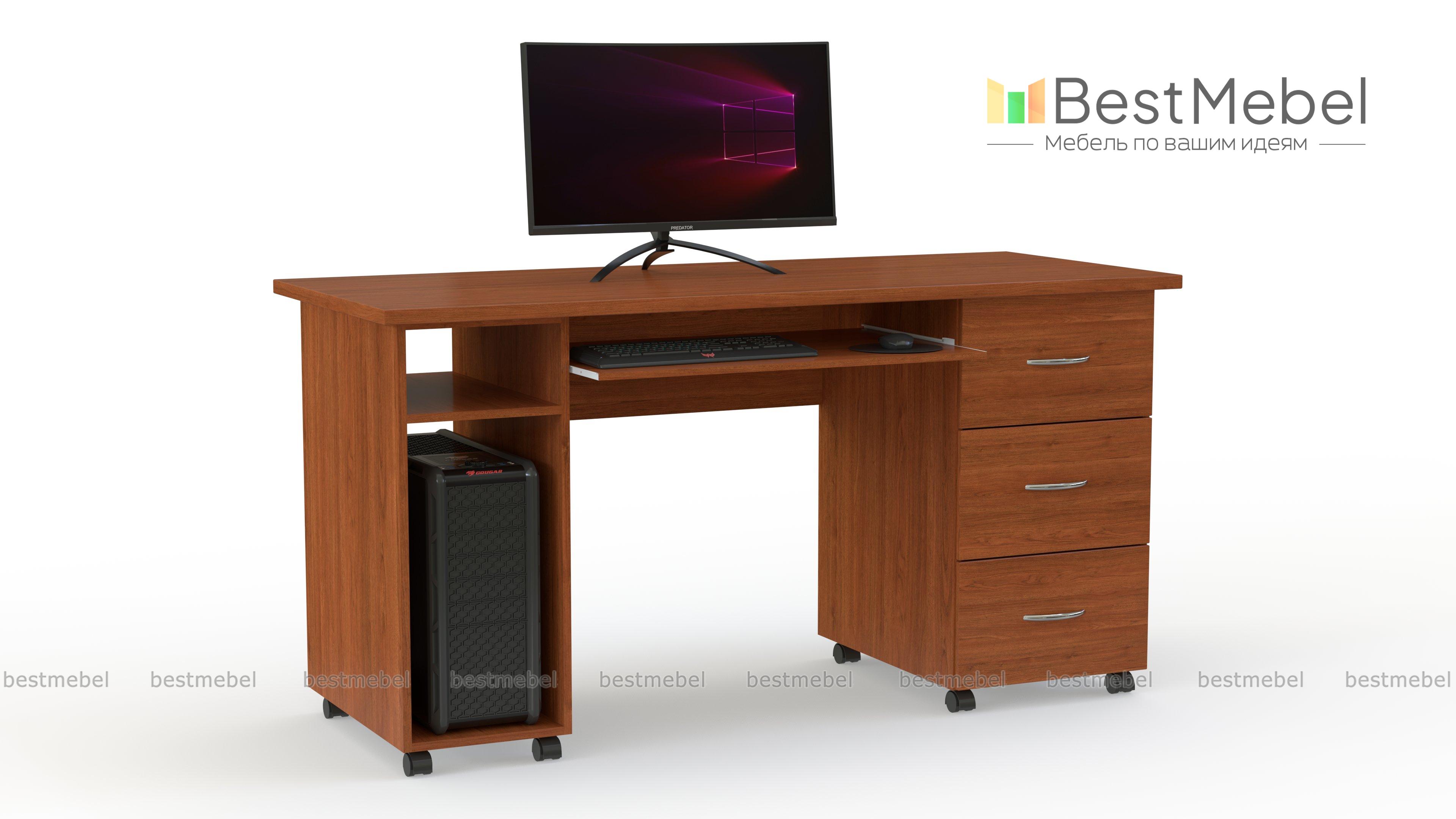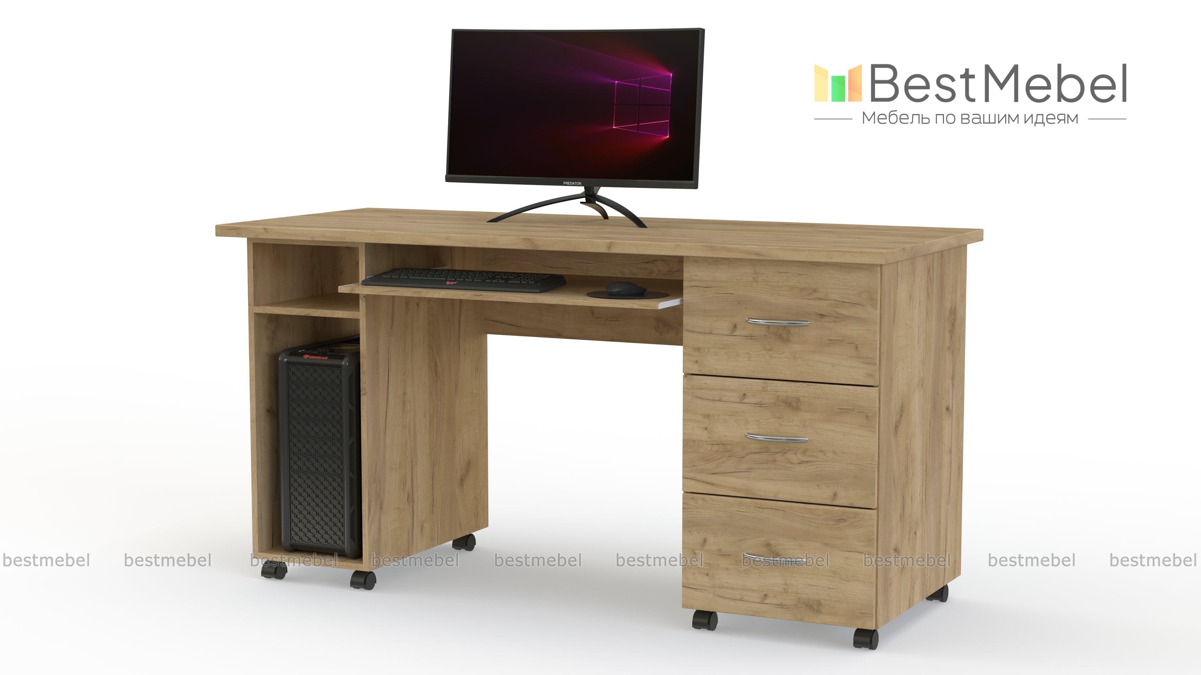 Стол Миф Л-01 BMS оборудован надежными колесными опорами и может легко перемещаться, облегчая перестановку. Классическая модель с просторной прямоугольной столешницей дополнена нишей под системный блок, выдвижной панелью для клавиатуры и тумбой из трех выдвижных ящиков. Универсальная конструкция делает стол подходящим вариантом для письма и работы за компьютером, а древесные оттенки на выбор помогут органично вписаться в меблировку. Купить стол Миф Л-01 BMS вы сможете в нашем интернет-магазине по доступной цене.