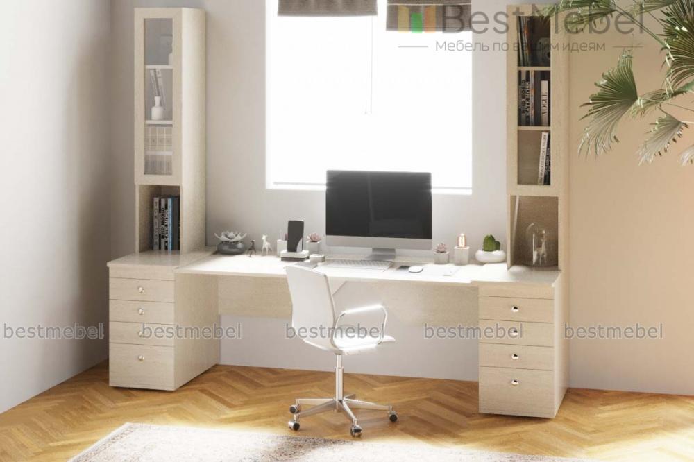 Стол письменный Дания 6 BMS поможет эффективно использовать пространство вдоль окна и обеспечить рабочему месту хорошую естественную освещенность. Композиция включает в себя широкую столешницу, две тумбы с выдвижными ящиками для хранения канцелярских мелочей и симметрично расположенные узкие витрины с нишами. Лаконичный по форме, стол выполнен в светлых древесных тонах, гармонично вписываясь в популярные скандинавские интерьеры. Купить стол письменный Дания 6 BMS приглашаем в наш интернет-магазин.