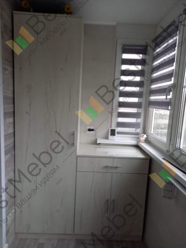 Изготовлена тумба к шкафу по индивидуальному эскизу на балкон. Заказ 194071. Тумба с выпиленным углом. Встала идеально. Альтернатива встроенной мебели.