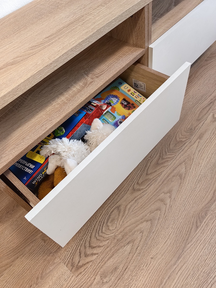 Красивая тумба под ТВ, цвет дуб сонома и белый