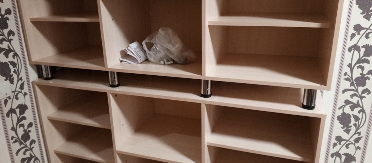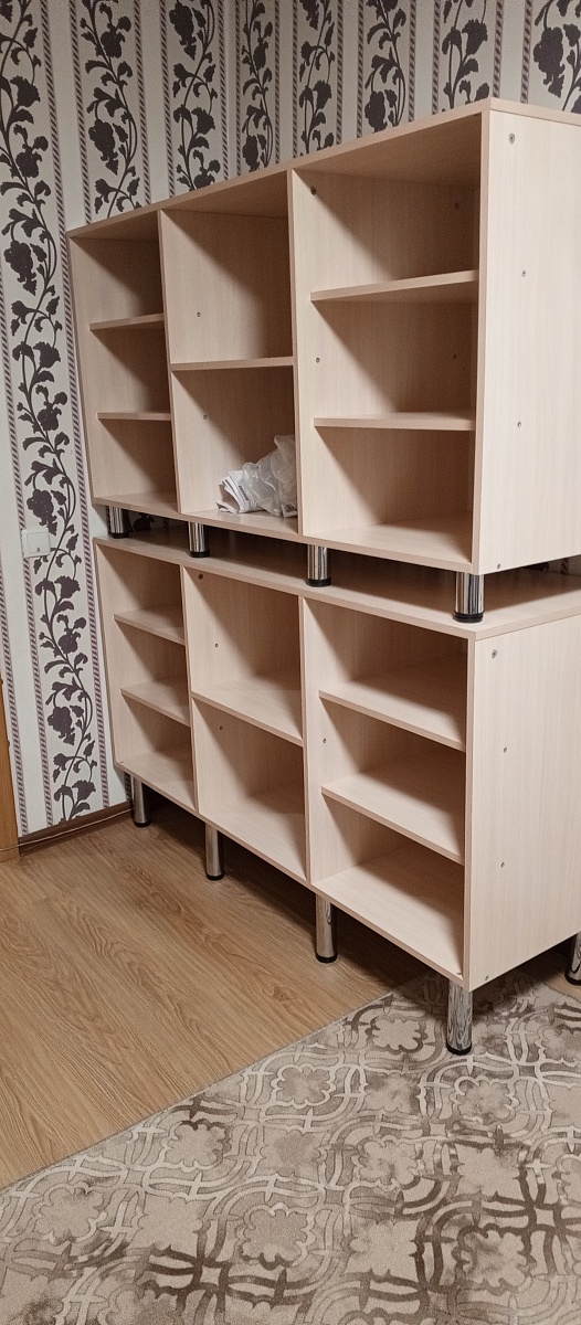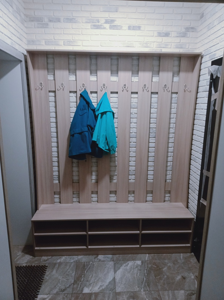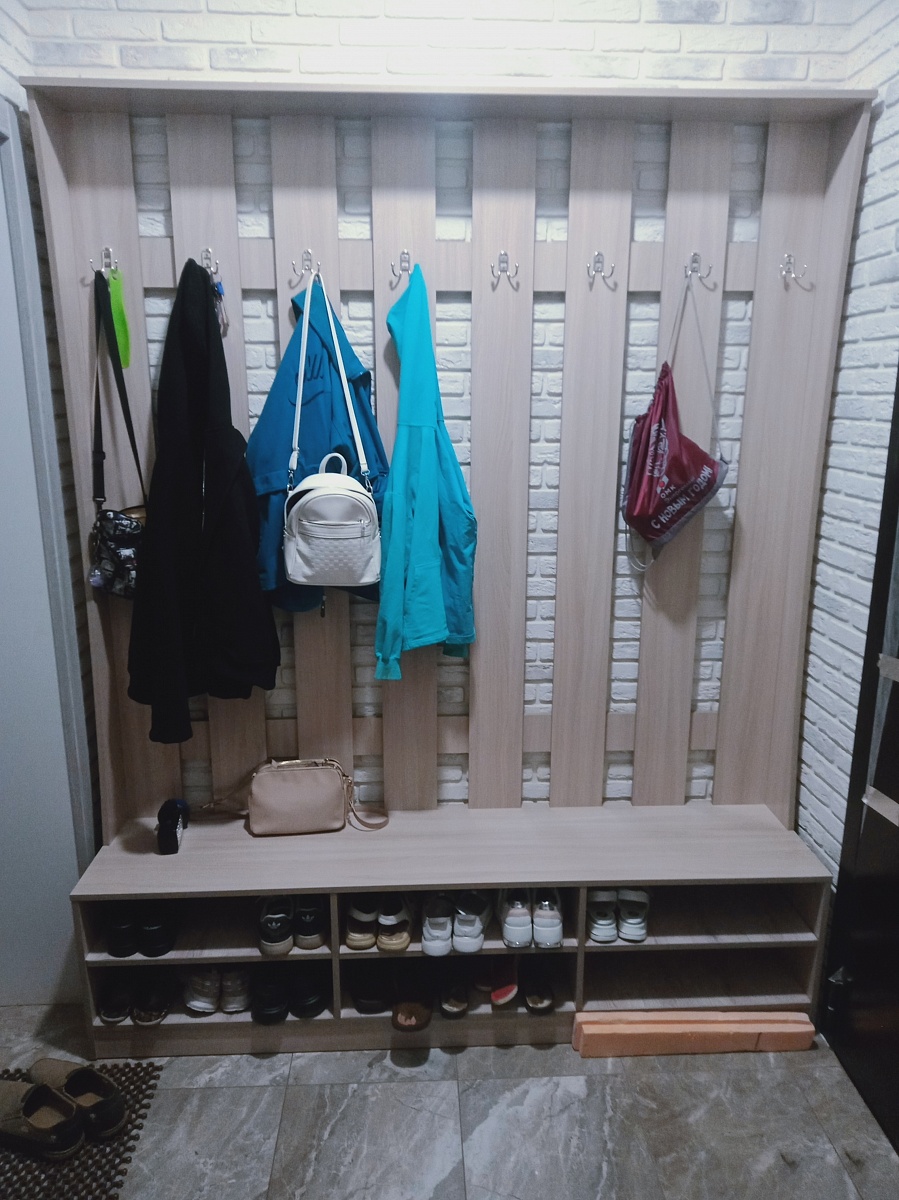 Заказ №10704. Прихожая шириной 1800мм, высотой 2200мм, имеет 8 двойных крючков для одежды и 6 отделений для обуви. Влезает примерно 18 пар обуви, съёмная полка добавляет трансформируемость прихожей - её можно при желании убрать и поставить высокие сапоги. Отлично  вписалась в тесное пространство прихожей и позволила разгрузить от горы обуви вход в тамбур. - при монтаже надо быть аккуратным, так как могу образоваться нежелательные сколы на деталях.- из-за высоты, которая оказалось выше дверного проёма пришлось собирать отдельно верх и низ прихожей. Собирается легко - главное не спешить и внимательно изучить инструкцию. Детали подписаны это упрощает сборку.