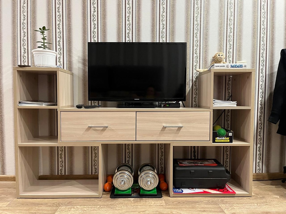 Полка Оскар 6. Приобрел сразу две, планировал использовать по прямому назначению - под книги. После сборки понравилось всё... кроме веса. Очень тяжелая, поэтому не рискнул повесить на стену (межкомнатная перегородка). Долго думал и решил немного "сколхозить" - нижнюю полку  установил на мебельных ножках высотой 20 см, верхнюю взгромоздил на ножках 10 см. , результат на фотографиях. Стёкла ещё не установил.   В целом, впечатление от полки хорошее. Но имейте в виду - вес у нее солидный.