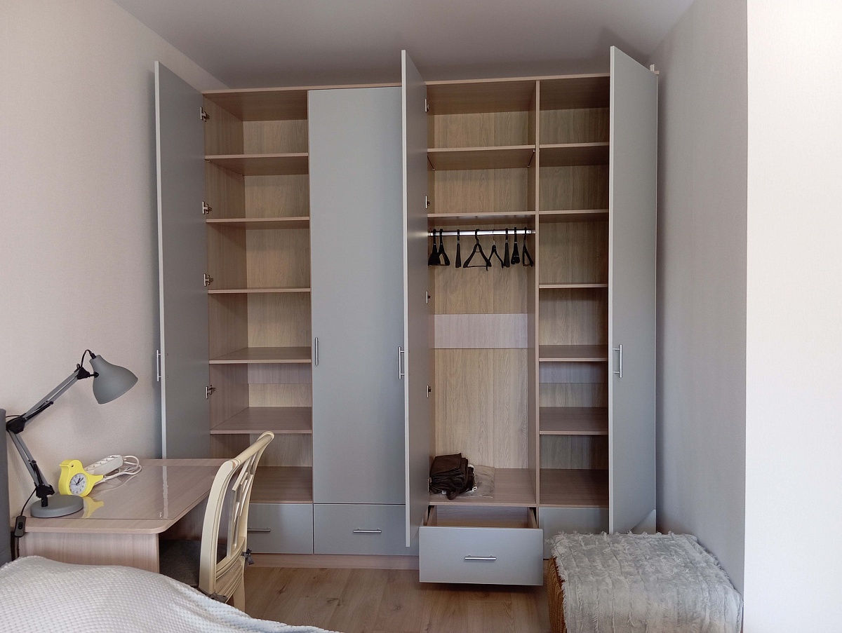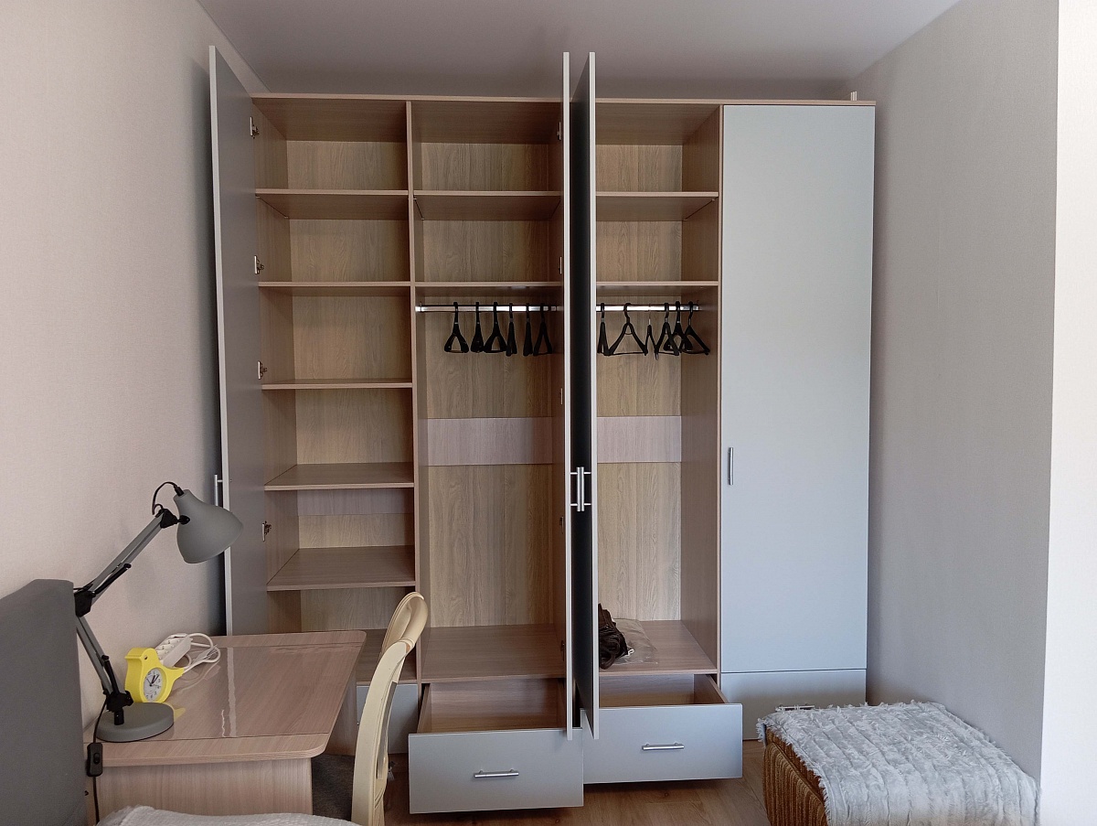 Заказ №891627 от 05.10.2023. 00000522958. Шкаф нужен был по индивидуальным размерам и с корректировкой внутреннего наполнения. Такая возможность в BMS для меня является большим преимуществом по сравнению с многими другими фирмами. Результатом очень довольна. Благодарна за работу фирмы на всех этапах, отдельное спасибо сборщику. Цвет Ясень Шимо Светлый/ Серый.  00000522958 Шкаф Эконом 6 BMS (1100х2400х630)