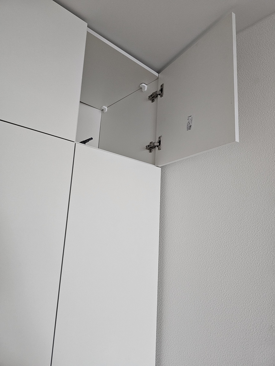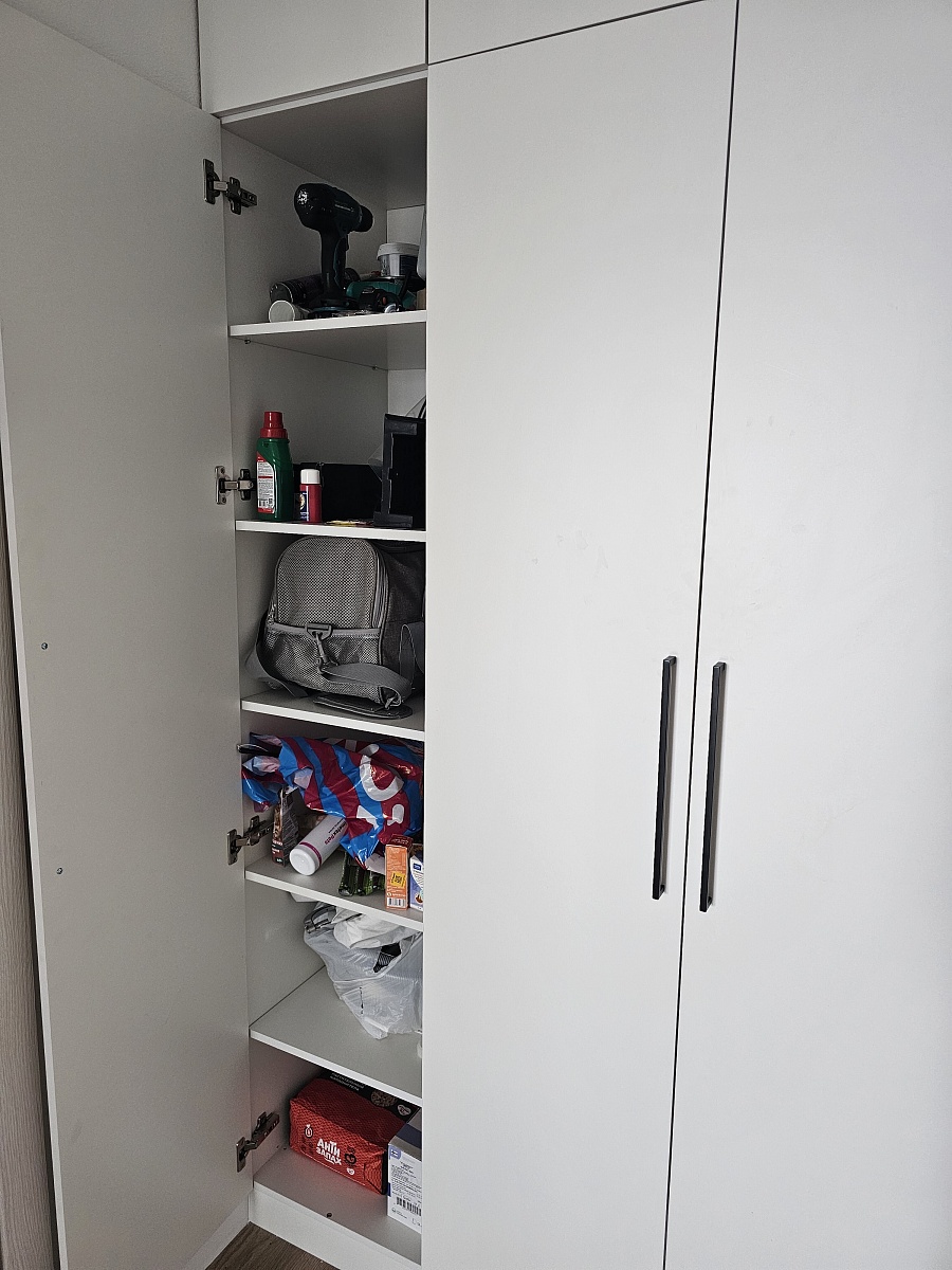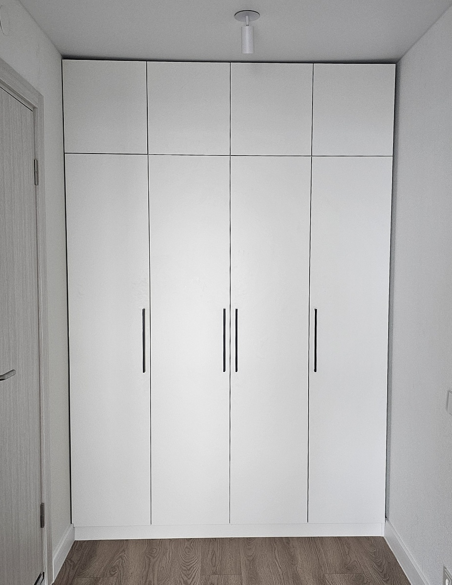 Искал белый современный шкаф во всю стену прихожей.Купил здесь, потому что смог выбрать индивидуальный размер под свою стену в ПИКе, доводчики дверей и нужные крепления для монтажа в нишу между стенами (встроенный).Шкаф собирал сам. Упаковка отличная. За час разобрался как собирать: есть схема-инструкция, на упаковке указаны номера деталей.Доволен дизайном, вписался очень гармонично. Качество супер. Советую брать фурнитуру с черными ручками: приятные на ощупь и красиво смотрятся на белом шкафу.