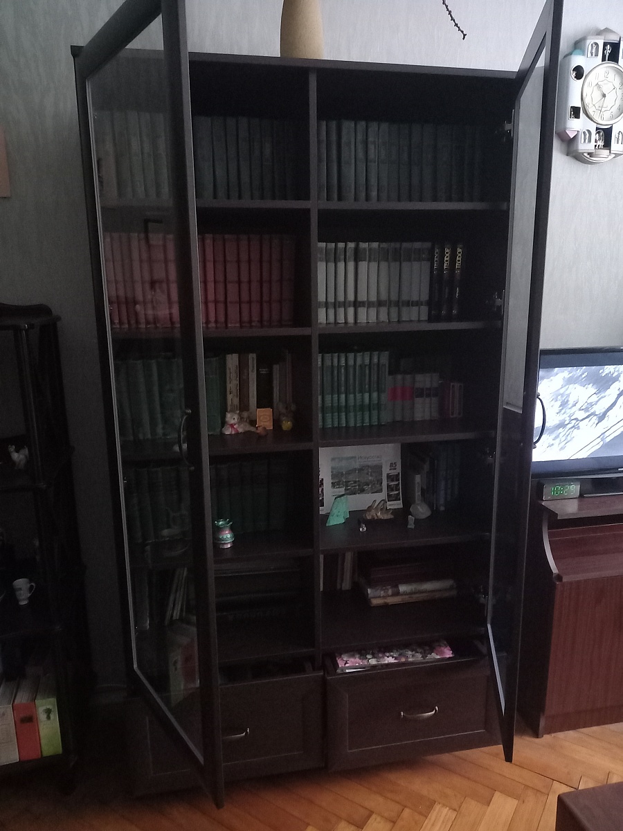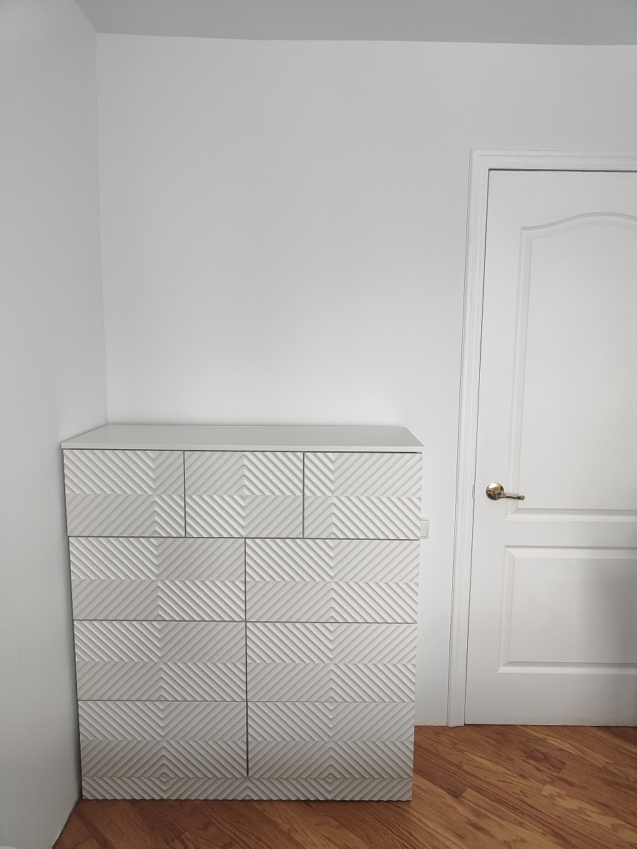 Собрали комод, который сами для себя придумали на основе имеющихся образцов с 9-ю выдвижными ящиками. Фасады с фрезеровкой выполнены и подогнаны очень хорошо. Рисунок был сложный, но все совпало и получилось очень красиво. Отдельное спасибо за нижнюю планку фасада на цоколь- получился единый рисунок и современный внешний вид. Есть замечания по глубине ящиков, т.к. в собранном виде ящики не доходят до задней стенке на 6 см. Как-то этот момент не согласовали. Думаю, сто можно было на 5 см точно увеличить глубину ящиков, что было бы функциональнее, т.к. комод это не только фасад, но и шкаф для вещей, постельного белья и Эти 5см я учитывала при выборе размера комода. Если проблема в фурнитуре, то можно было это обсудить. А так, нам теперь с этим жить. Ещё сборка тоже в некоторых местах не продумана ( центральные внутренние отверстия под симметричные направляющие почему-то одно сквозное. Получается, что направляющие с одной стороны прикрутили, а потом с другой стороны центральной стойки в те же отверстия нужно прикручивать с другой стороны направляющие. Шурупы ломаются друг о друга и конструкция кривая. Пришлось подгонять самим. Не хватило 2-х больших шурупов для сборки корпуса. Думаю, что лучше больше класть, чем меньше. Это уже 2-й наш большой заказ. В любом случае большое спасибо, что Вы воплощает наши мечты! Отдельное огромное спасибо инженеру-конструктору и мастеру по внешнему виду фрезеровки. Получилось ОГОНЬ!