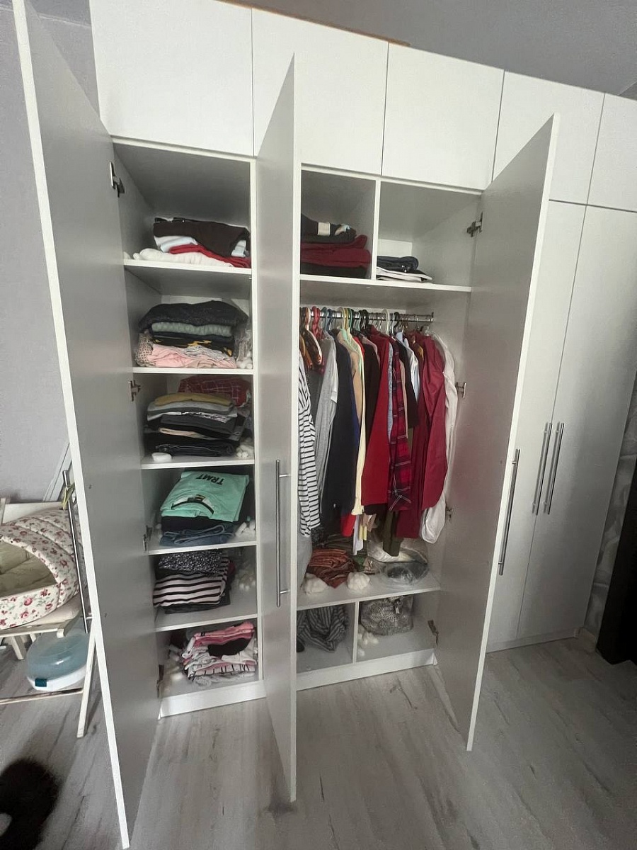 Вместительный шкаф, замороченная сборка, не хватило несколько саморезов, но в целом остались довольны)Соединили с другим шкафом - очень удобно.