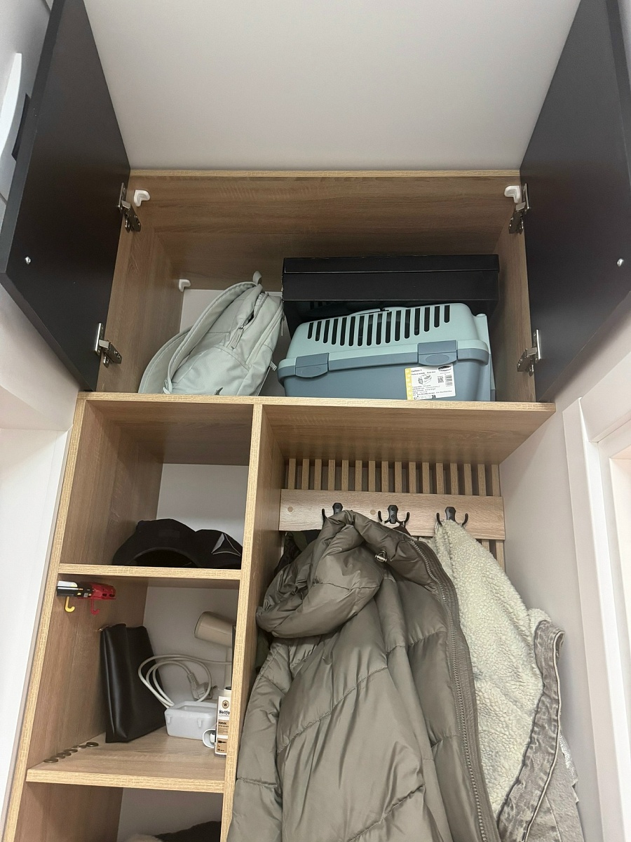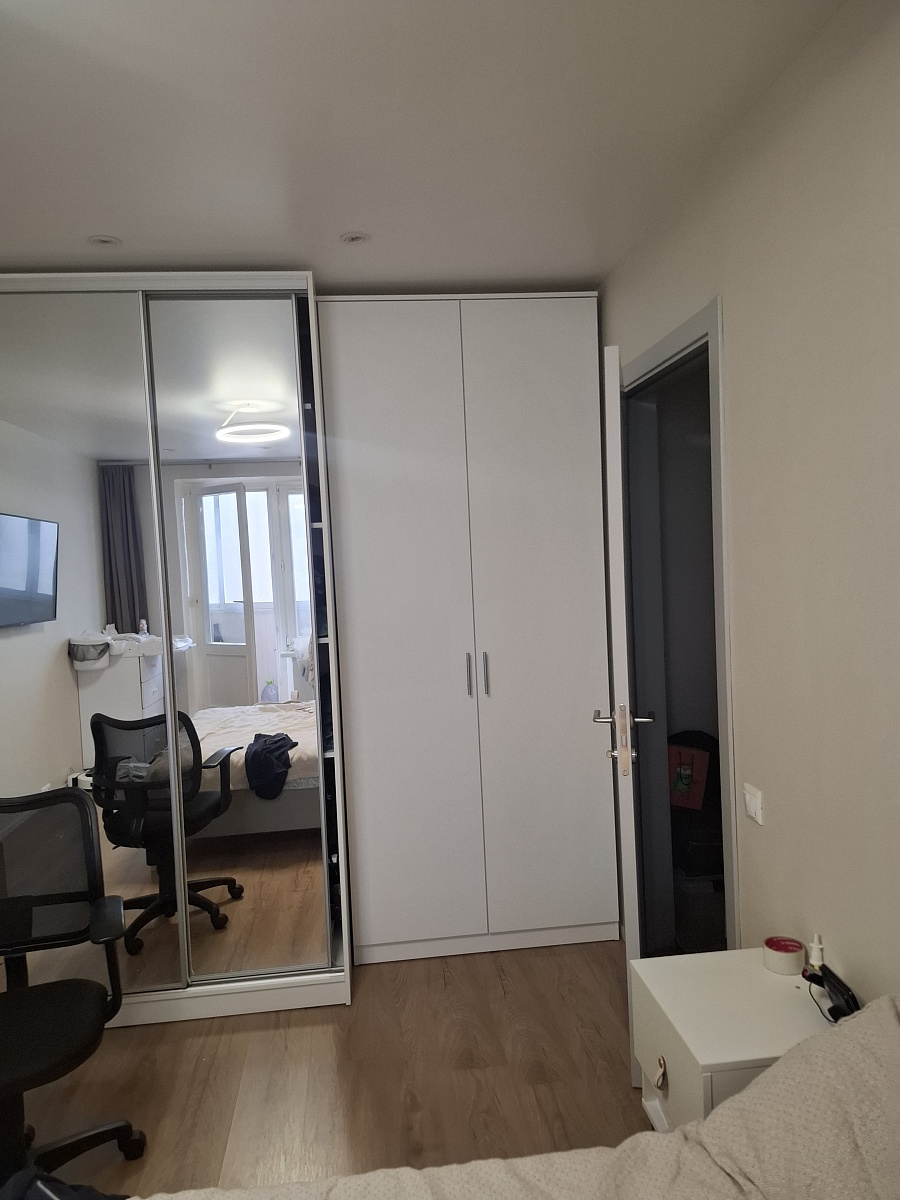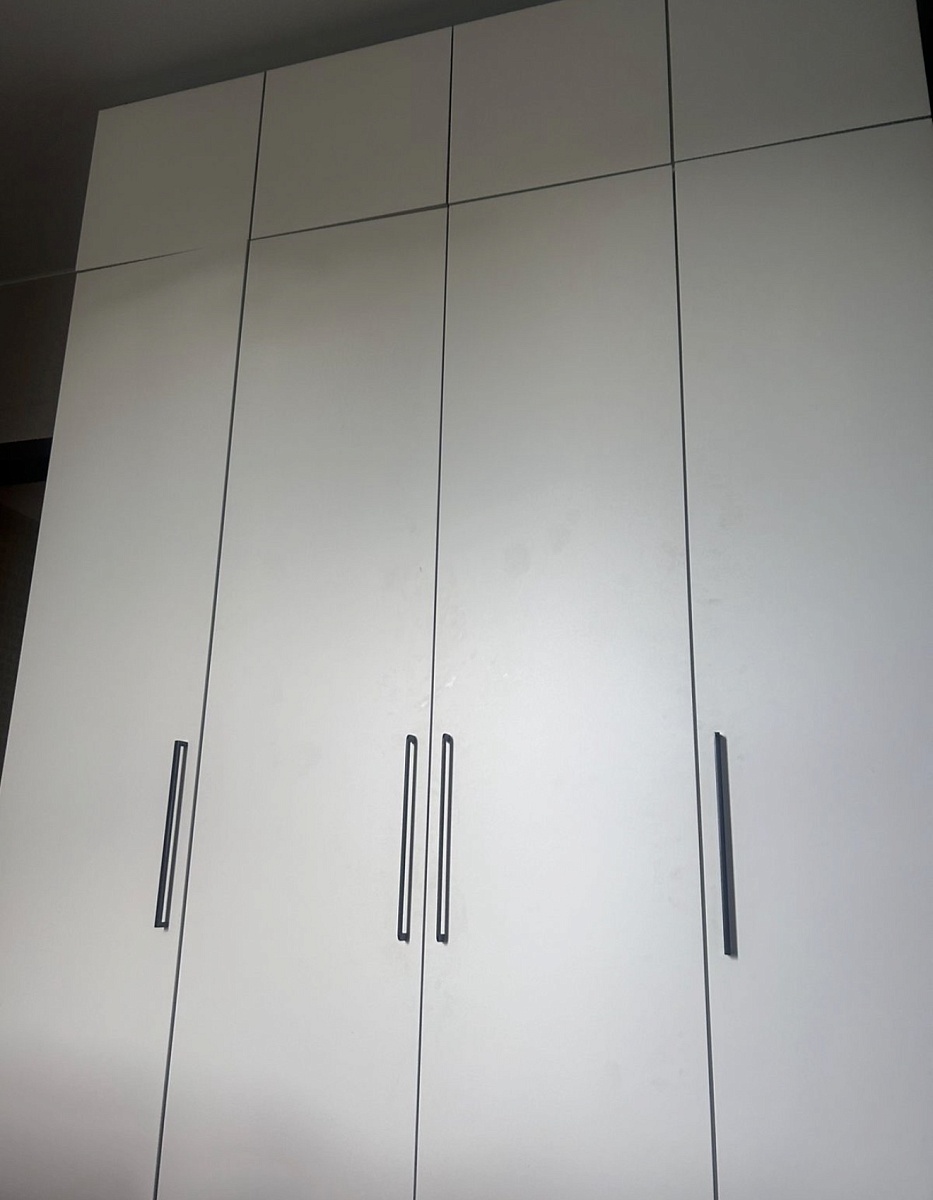 Шкаф покупали в прошлом году. Оформили в мебельном магазине лично. Мы внесли свои коррективы. Все ок. Когда доставили обнаружили, что положили разные ручки для дверей. Попросили заменить. Привезли на следующий день, но снова не такие. Решили уже забыть. (Брючницу на фото уже докупали сами)