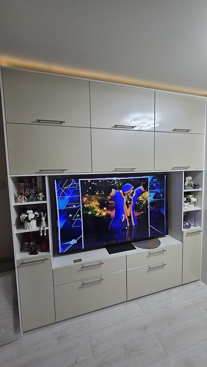 Стенкой довольны. Вместительная, красивая. Собирали сами. Были небольшие проблемы с регулированием ящиков и поменяли петли на одной двери шкафа Но в целом классная мебель.Спасибо!
