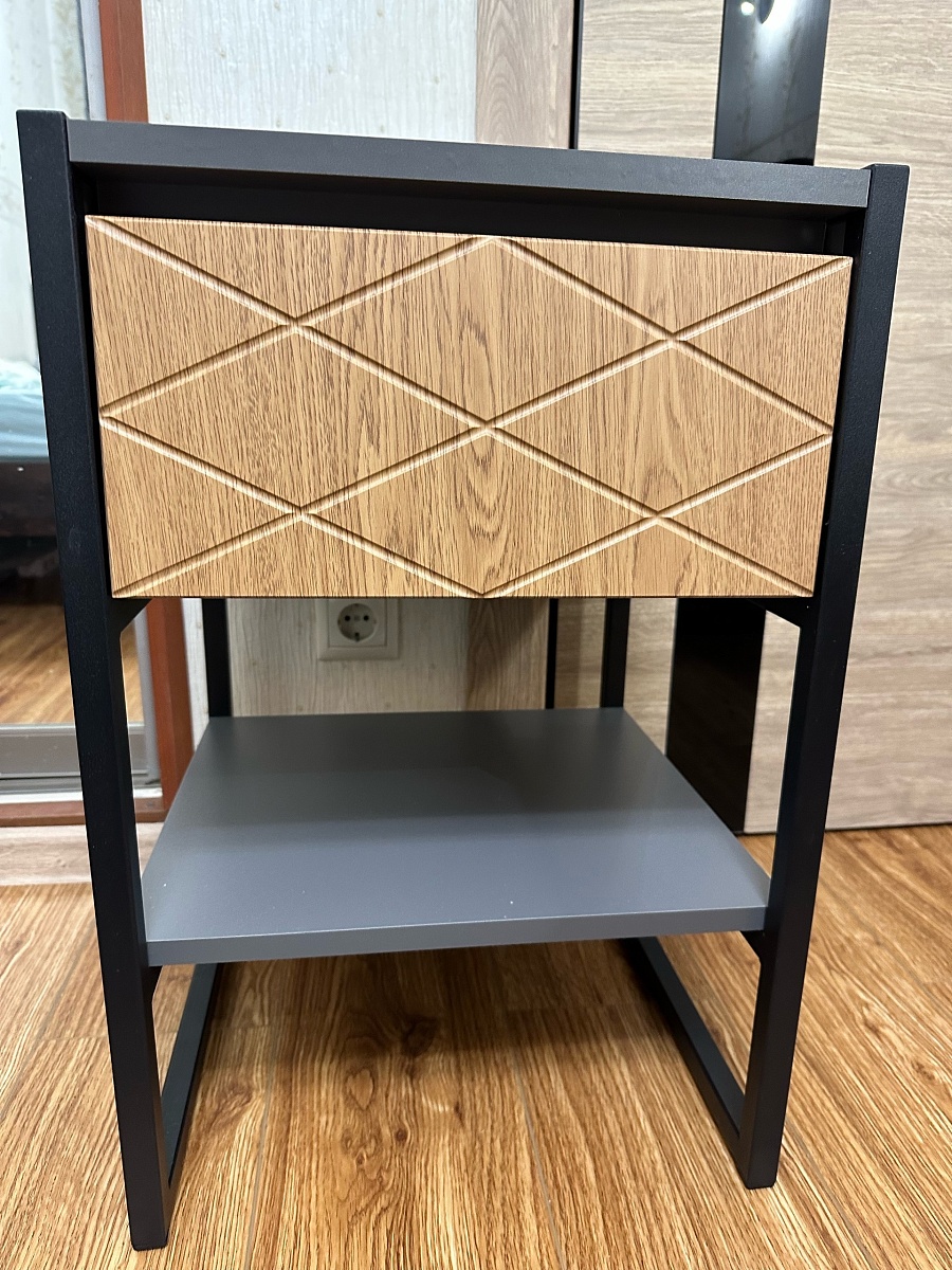 Давно искал тумбу похожего дизайна в нужной мне цветовой гамме и размерах, и в интернете ничего адекватного было не найти. Снова на помощь пришла BestMebel, выполнив мои пожелания и приняла дополнение заказа по телефону.У конструкции тумбочки есть и минус. С прикрученной как ее тут назвали "Задняя панель1" невозможно вытащить/засунуть ящик, так как задняя часть ящика не может зайти на направляющие под углом, мешают полсантиметра высоты этой детали. Для этого пришлось уже после сборки разбирать перед ящика, откручивать крышку, засовывать ящик, прикручивать обратно крышку и уже потом снова собирать перед ящика.