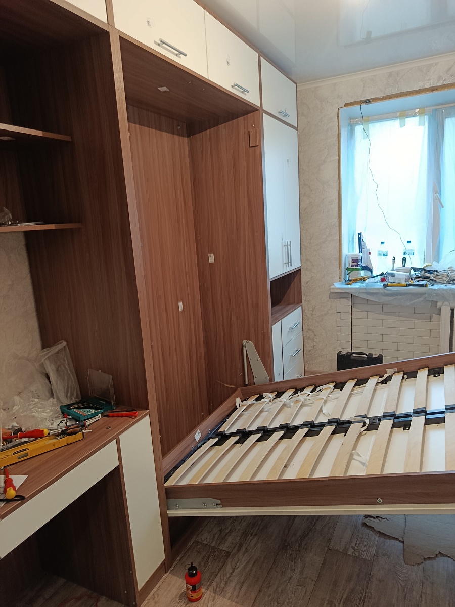 Я долго искала шкаф-кровать трансформер с диваном, походящий мне по размерам (комната 11 м2). Хотелось, чтобы была кровать, но днем не загромождала и так маленькую комнату, и ьыло где посидеть. Только здесь удалось учесть все нюансы. Спасибо конструктору и менеджеру за то, что все пожелания учли! Сборщики аккуратно, отлично все собрали, ровно подогнали под не очень-то прямой угол в комнате! Кромка 2 мм - это того стоит, изделие прослужит долго. Диван с подушками на молнии - удобно, если со временем понадобится заменить наполнитель. Петли с доводчиками - ничего нигде не хлопает. Рекомендую.