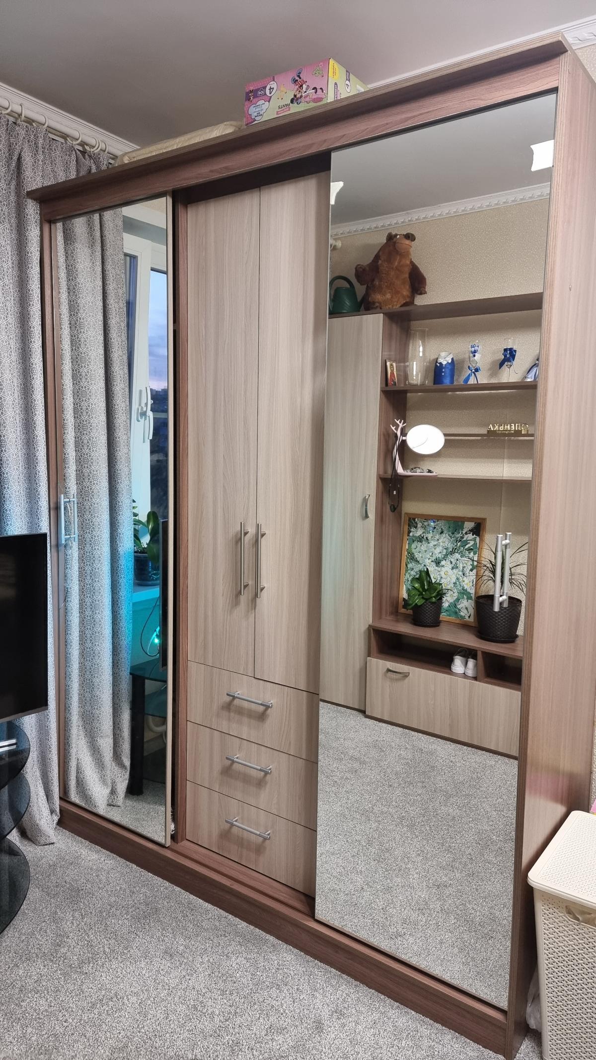 Очень удобный  и многофункциональный шкаф. Единственный минус, это очень большой зазор, который видно  и невозможно с ним ни чего сделать. Не первая моя покупка, рекомендую покупать мебель тут.