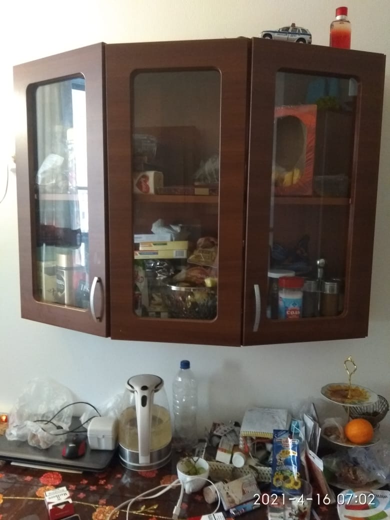 Повесила над потом в кухне. Все, что вечно валялось на столе + всякие конфеты, кофе сахар и т. д. влезло. И даже больше. Удачно я купила.