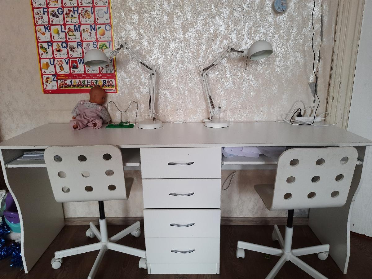 Стол очень понравился,всё в комплекте,с белой столешницы всё хорошо вытереть.Заказ пришел своевременно.Порадовали ящики,они настолько крепкие-хоть кирпичи ложи,выдвижными полками для клавиатуры дети пользуются пока как глубокими полками для книг и бумаг.Единственное если у вас нет дома мужчины или у него мало времени,лучше заказать сборку!