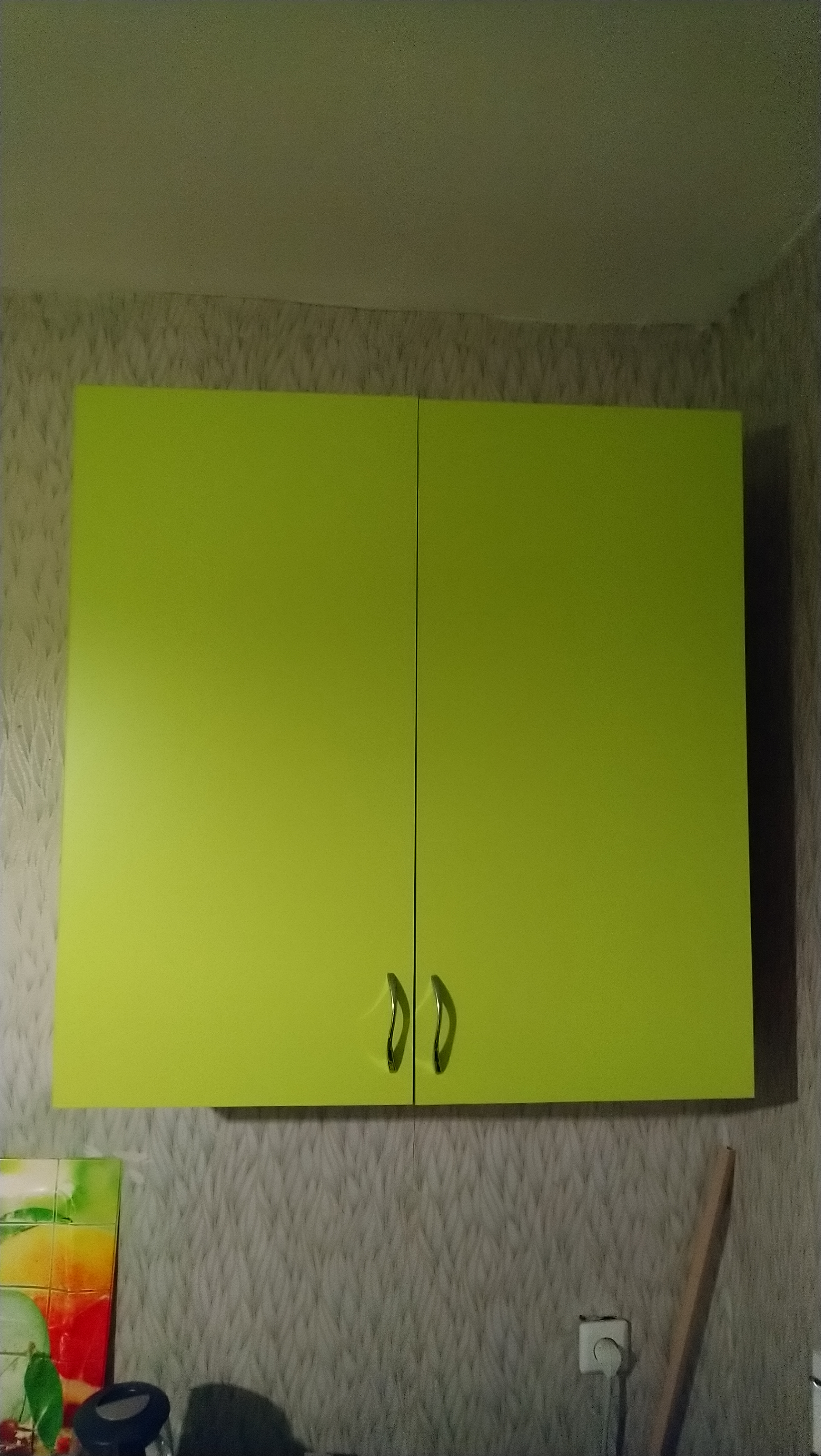 Отличный навесной шкафчик, дверь пришлось перекрасить и заменить ручку. В целом все хорошо.