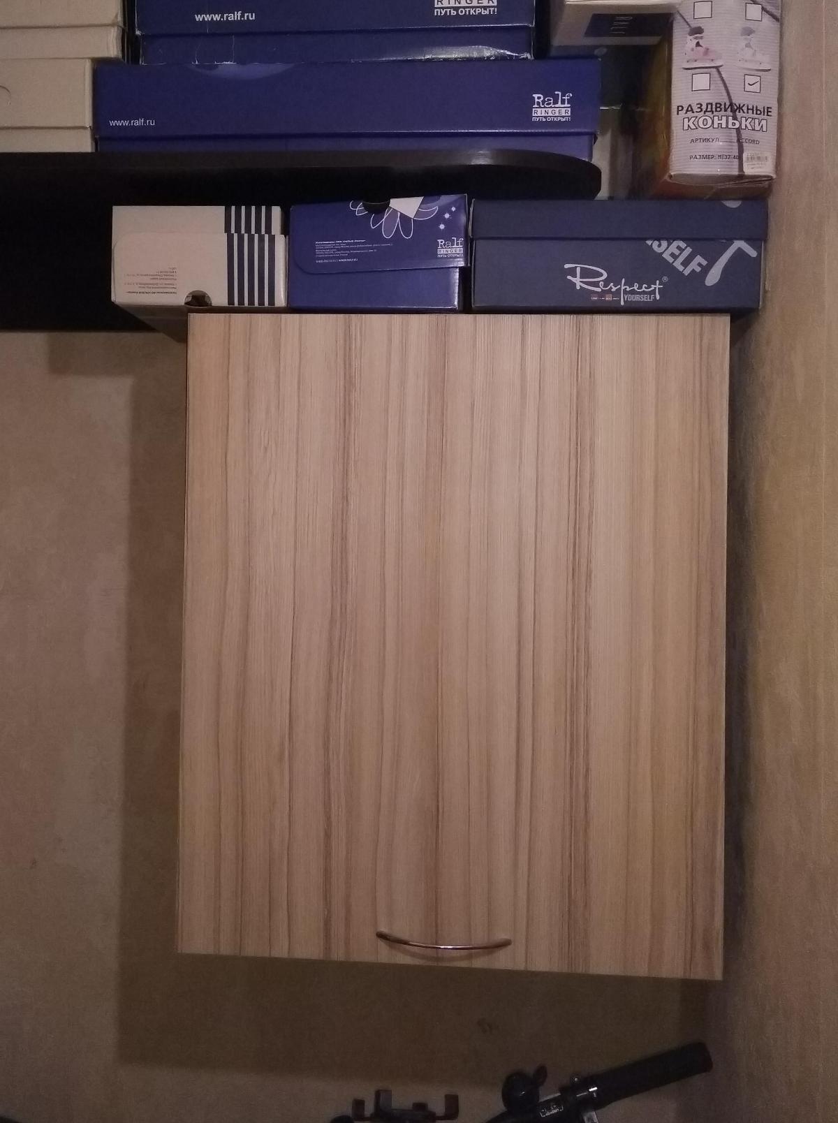 Заказ № 403896/403897/403898Порадовало крепление на рейку на регулируемые навесы. Монтаж шкафа не занял проблем, правда в пришлось проделывать отверстия в оргалите для регулируемых навесов. Искал именно навесной шкаф с малой глубиной и высокий. Качество соответствует цене. Если аккуратно пользоваться, прослужит нормально.Рейка шла в комплекте.