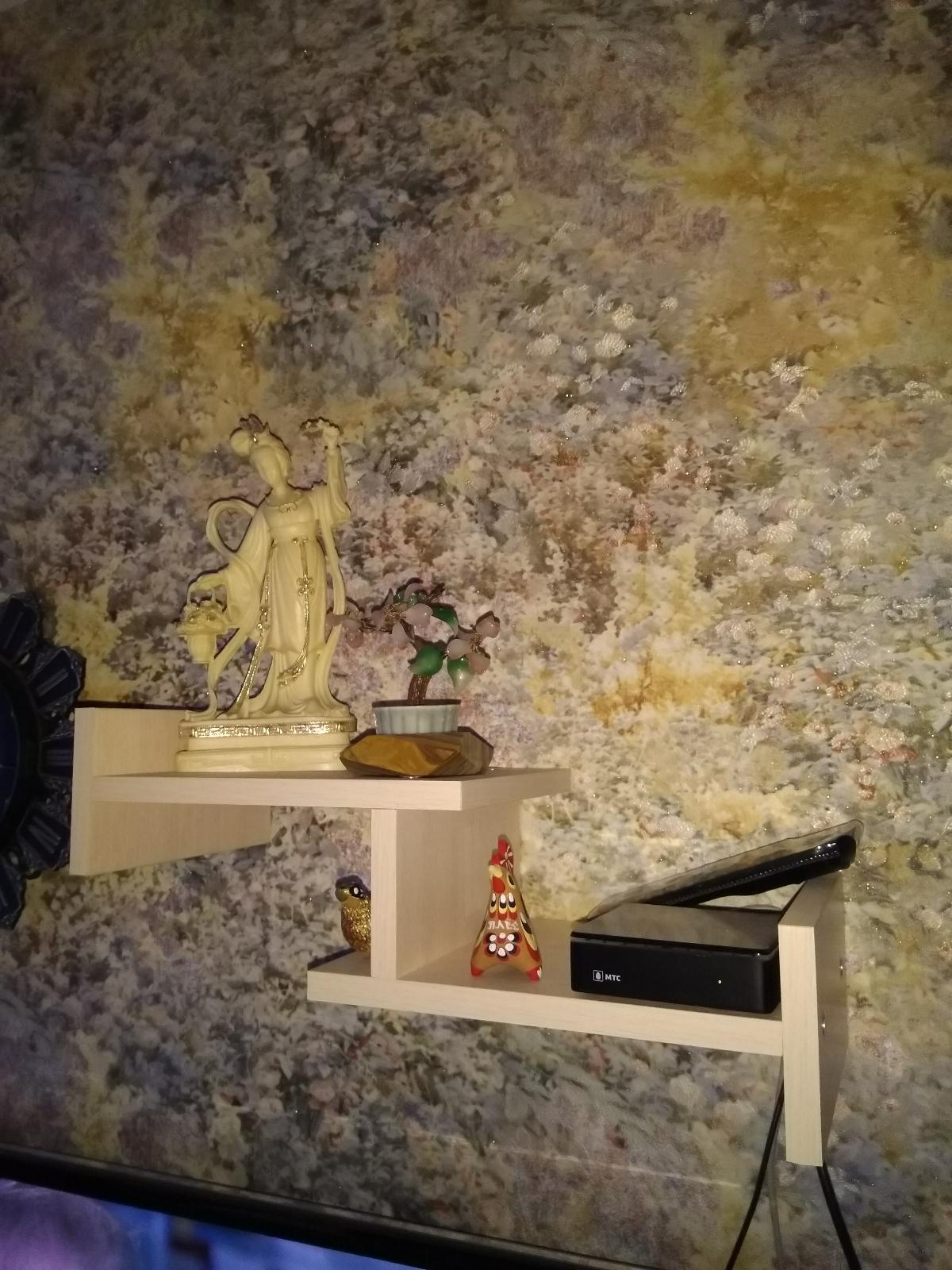 Полка досталась в подарок. Красивая, вместительная, приятно освежает интерьер.