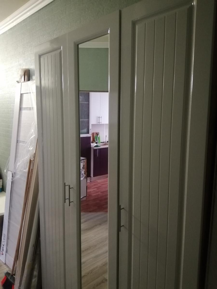 Сделали под мои параметры, довольна всем, согласна с предыдущим отзывом, что зелёное зеркало с обратной стороны шкаф не красит. Очень сложная сборка, собирали сами, запутались с петлями, они оказались разные для разных дверей, в описании  это не было указано. Брали петли с доводчиком, не нарадуюсь. Брали дополнительно штангу в два ряда, нижняя оказалась не удобна, слишком маленькое расстояние, сняла, не пользуемся. Двери были затянуты в плёнку. Трудно оттирать наклейки с деталей. А в целом шкаф красивый, стоит 2 месяца, никаких претензий.