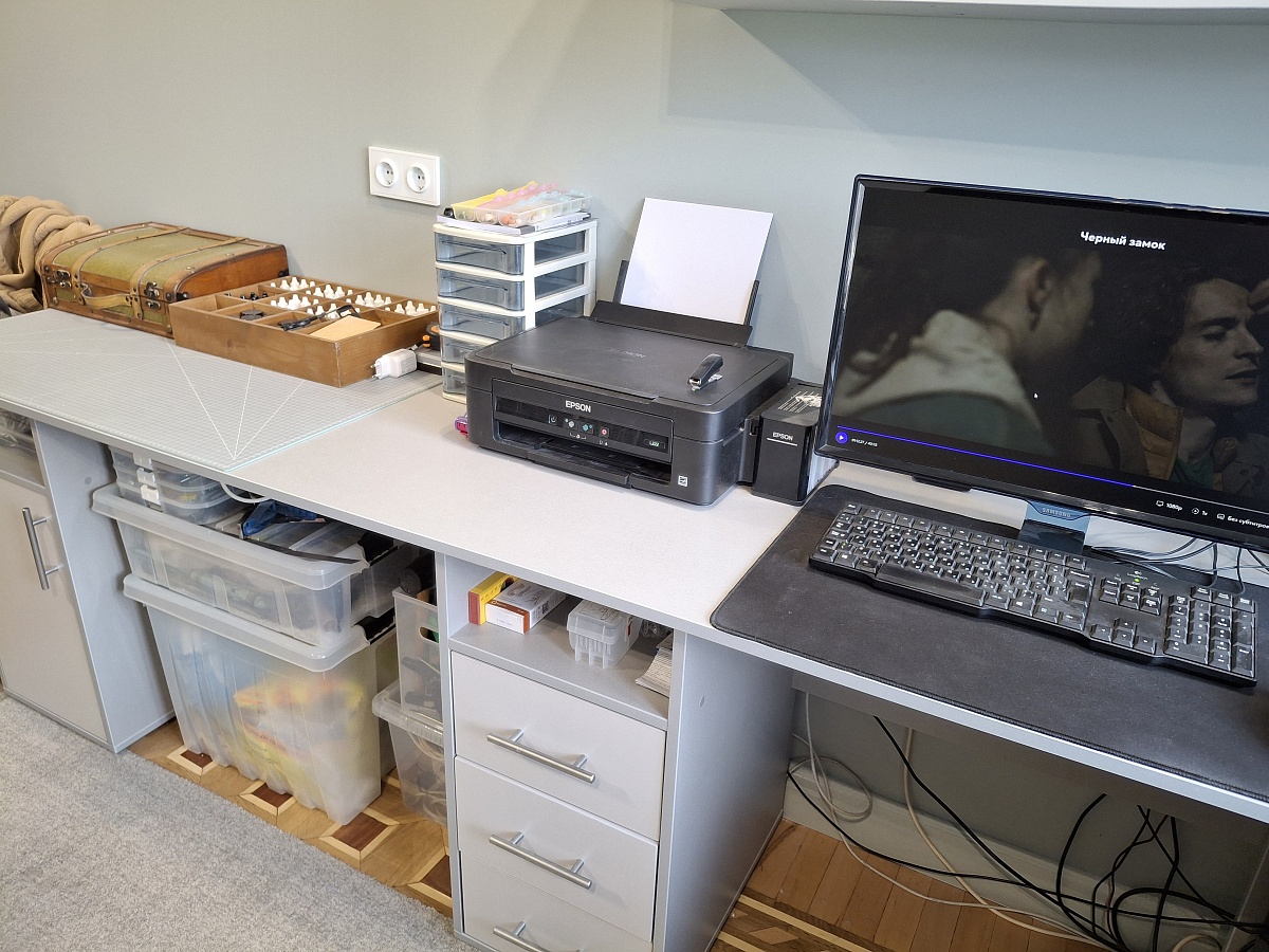 Отличный стол, копия икеевского стола Алекс. Только есть возможность изменить размеры, отделку, цвет, направляющие. Заказала одновременно со стандартным стеллажом. Собрали сами без проблем. Прикрутили к подстолью с подъемным механизмом. Получился очень комфортный мини-офис на дому.