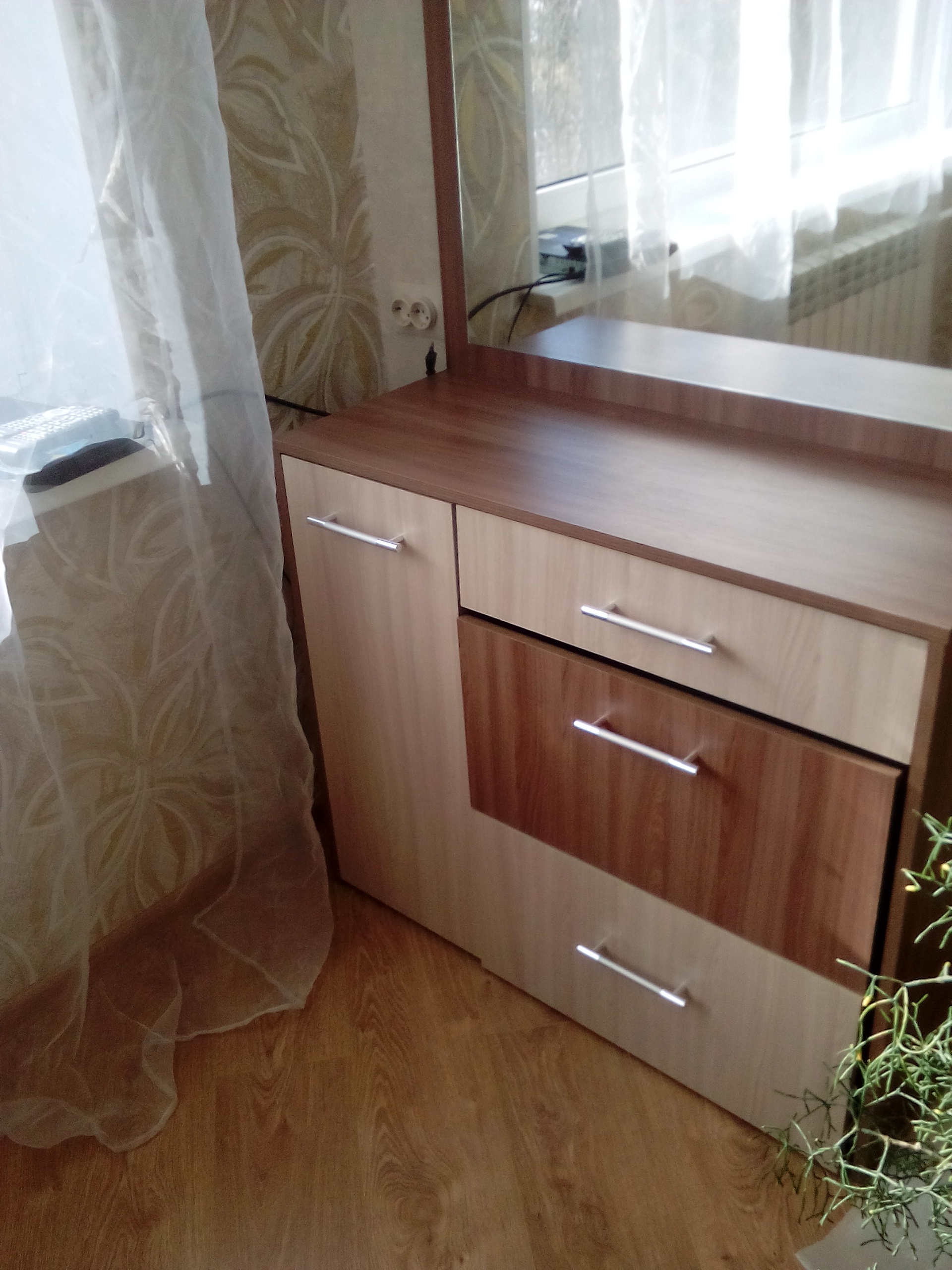 Очень довольна покупкой! Стильный, вместительный. Беру не первый раз в этом магазине мебель, самое удобное, это то, что можно выбрать свои размеры и фурнитуру. Мы брали комод шириной 180, высотой 70, грубиной 40.