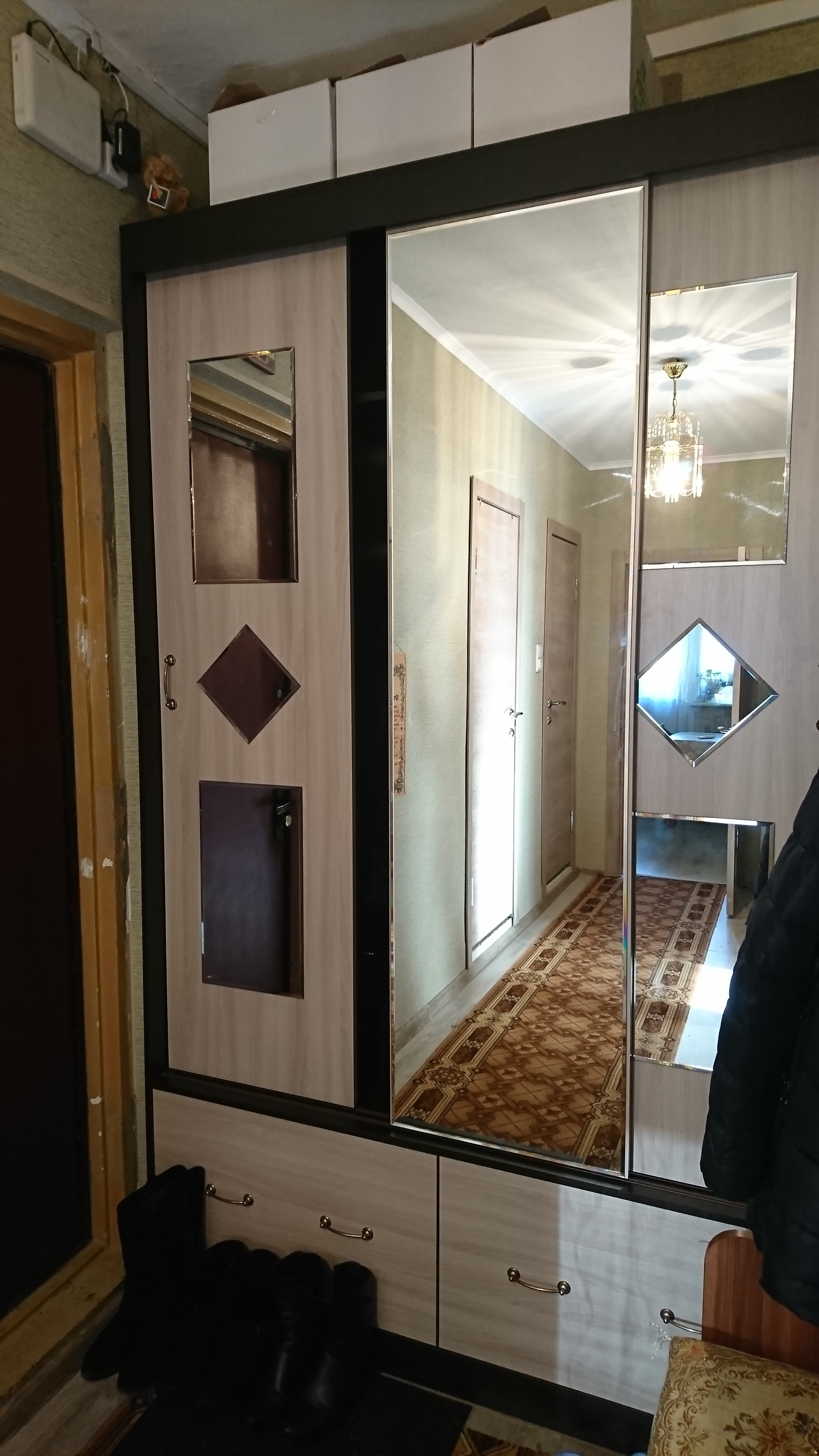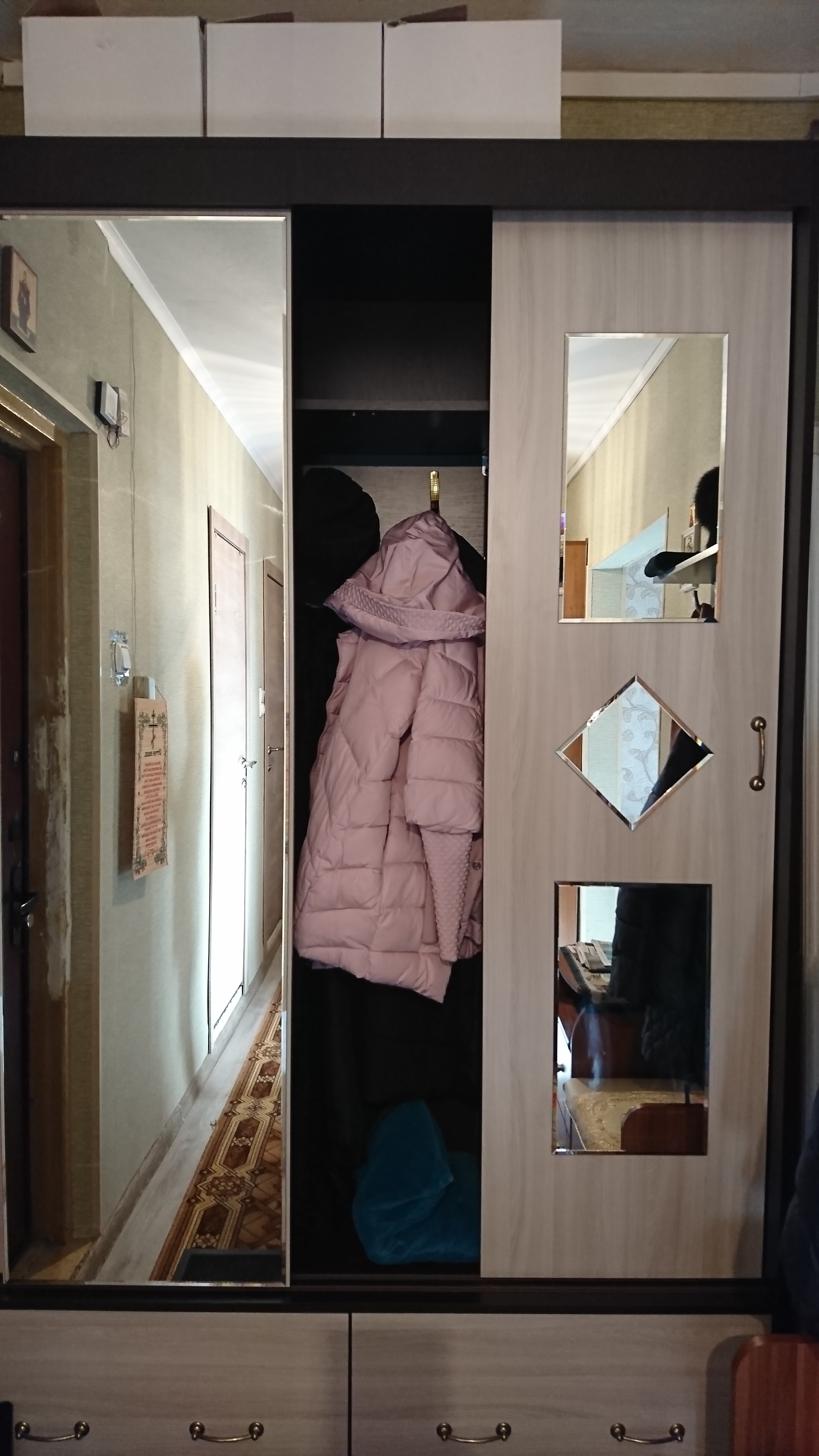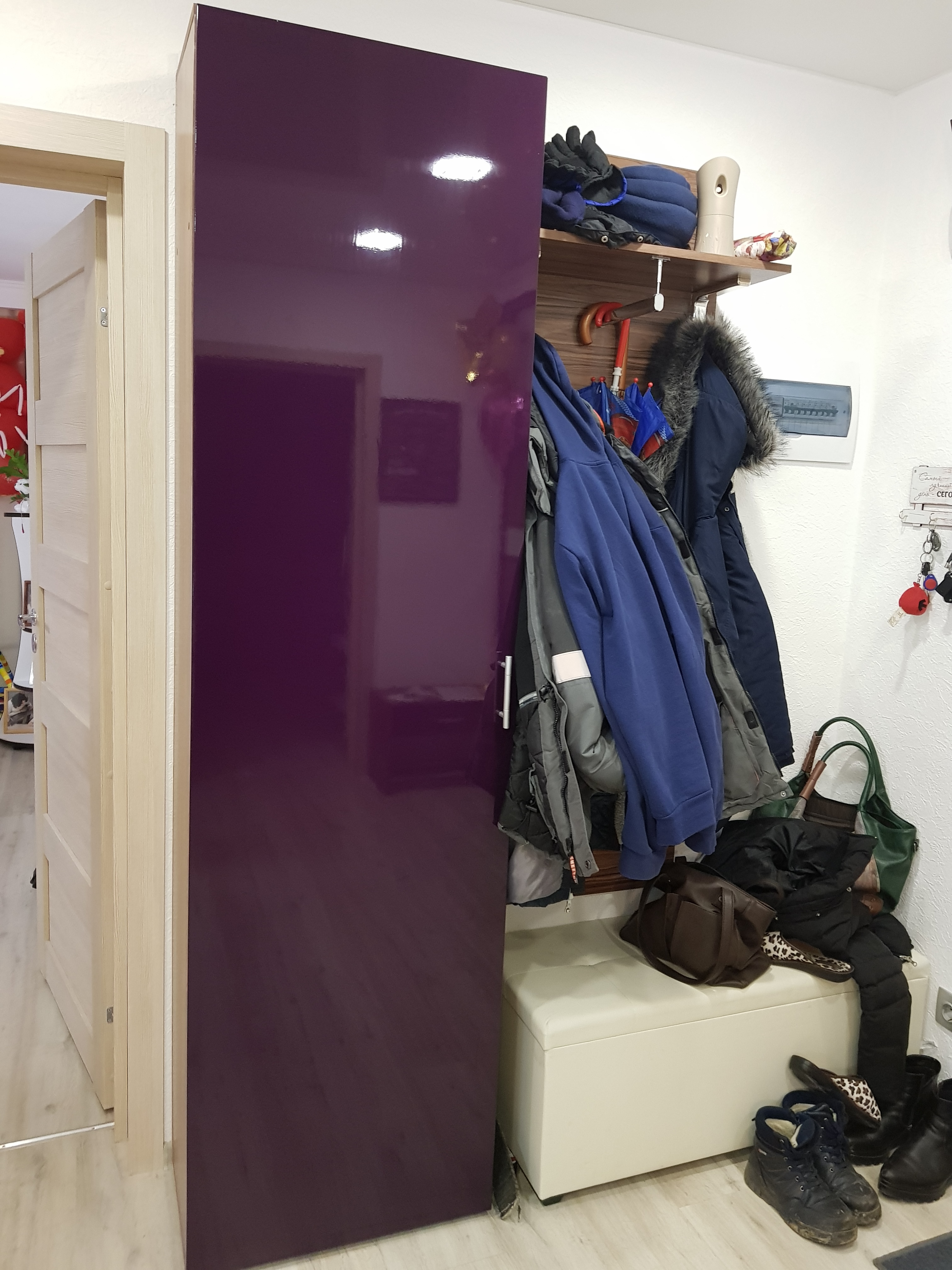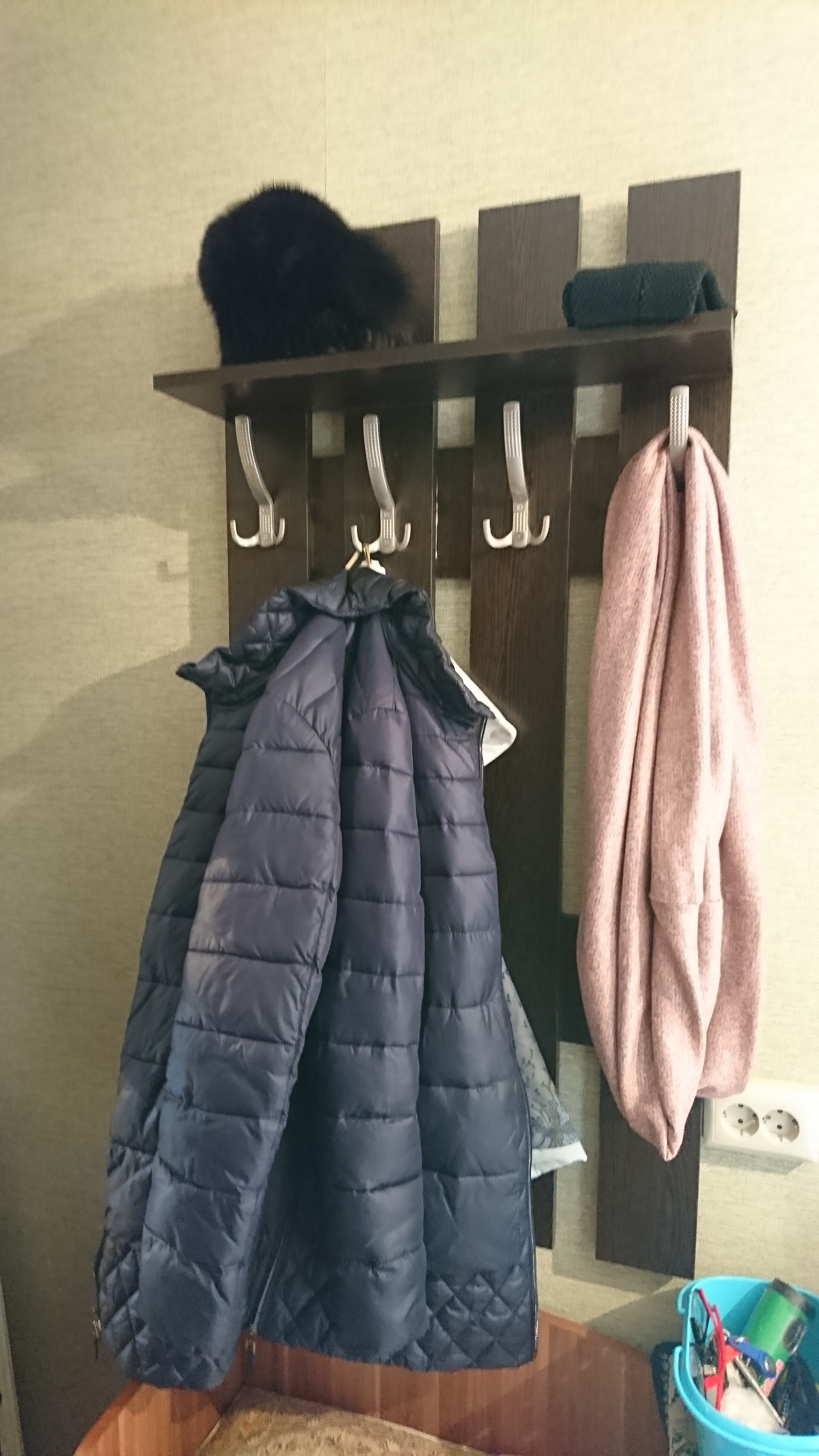 Заказ 313390. Заказывала для прихожей. Очень красиво. Немного было не удобношкаф узкий штангу не сделаешь, а выдвижная поперечная сразу сломалась под тяжестью одежды. Сделала крючки, теперь здорово.