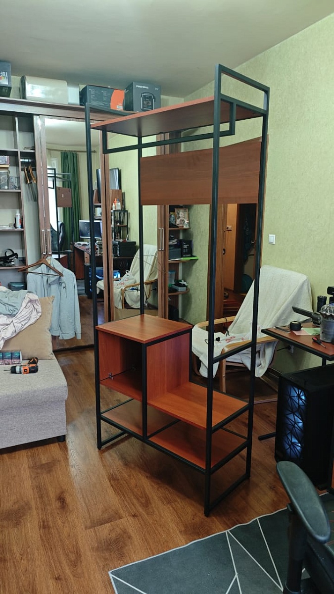 Ну, что... Первым буду. Очередная конструкция на раме. Уже был стол (огромный), уже был журнальный столик. Теперь вот прихожая. Собирать это всегда отдельный квест, так что запаситесь терпением и 3д воображением. Но все собрано и вполне себе удачно вписалось в квартиру, есть последние фотки. Ну и несколько фото в процессе сбора. А теперь о неприятностях. Хех, куда без них?1. В сборке недоставало одного мебельного конфирманта и и одного железного потая под винт. Ну благо есть второй комплект потаев пластиковый. А конфирмантов у меня примерно 500 штук на балконе 2. Наклейки на днище ящиков оторвать не повредив краску невозможно. Неприятно.А теперь странности конструкции:1.  Зачем нужны подвесы на вешалке? Вы реально думаете что кто-то повесит всю эту дуру за ЛДСП закрепленную 4 саморезиками?2. Крепление верхней полки логичнее было бы перевернуть петлями вверх. Обычный человек (не дядя Степа) находится ниже полки и потому может наслаждаться саморезами и петлями, в перевернутом варианте их бы не было видно.3. Саморезы для крепления вешалок внушают. Они всего 35мм. Это в ЛДСП 16мм? Есть конечно куча белых, но именно белых. Сложно было положить комплект черных отдельно?