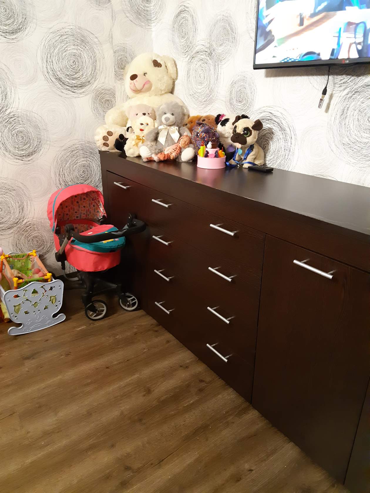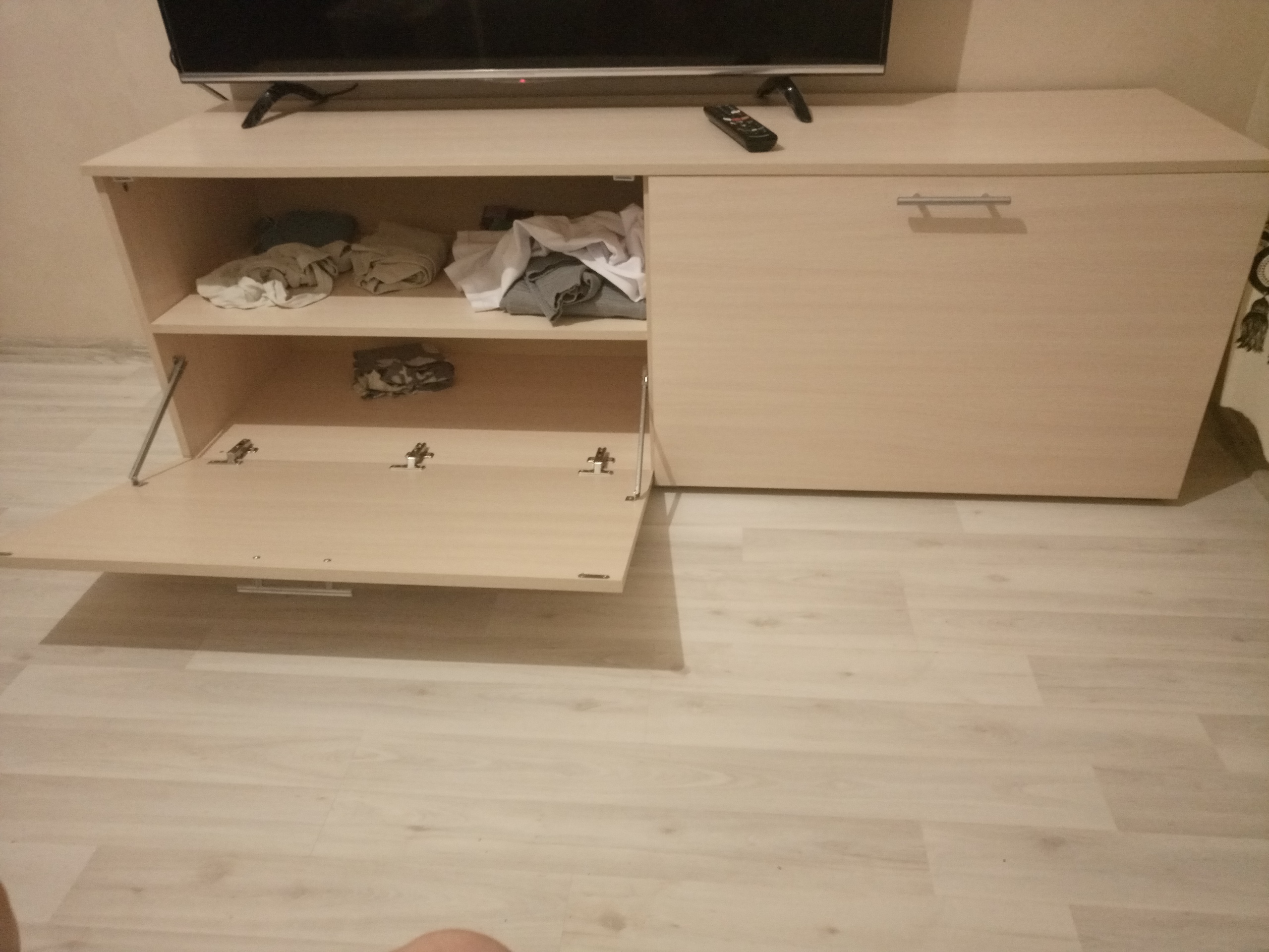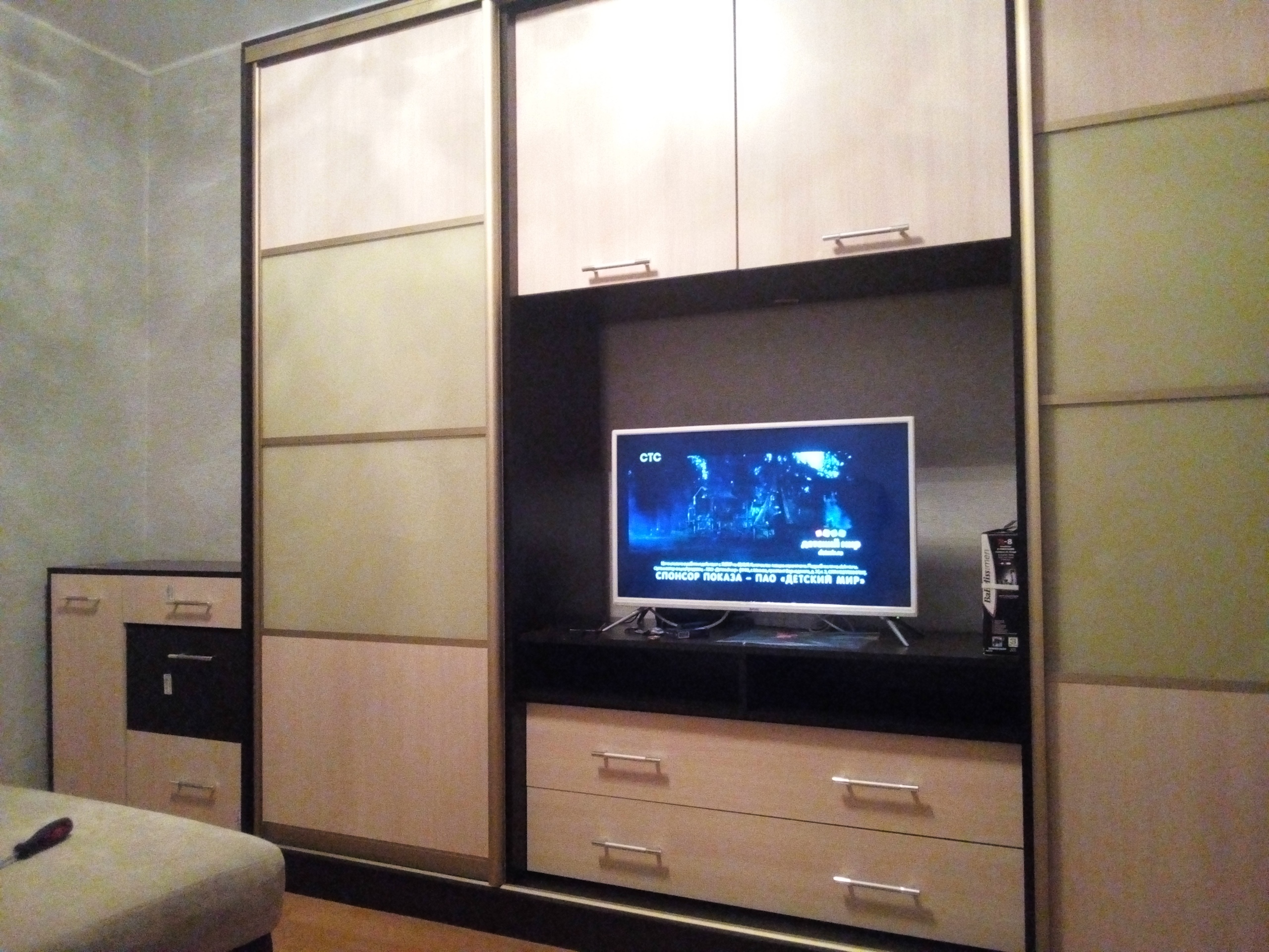 Огроооомная тумба, просто шикарно. Телик 55 дюймов вписывается легко.Половина вещей влезла без проблем.Очень удобно, что можно устанавливать свои размеры, цвет и даже типы ручек. В итоге чуть ли не вся мебель из вашего магазина - заказы разные, а за счет возможности ставить свои критерии, выглядит как единый набор.Вы молодцы, доволен всем.(Заказ 00000196055)